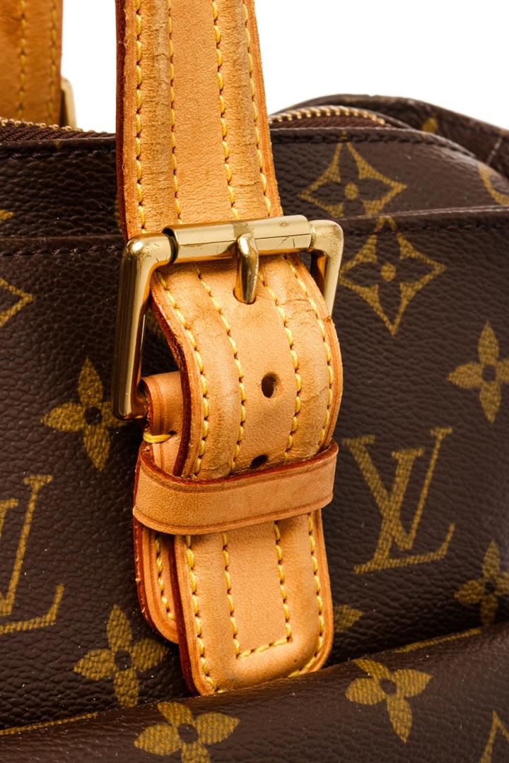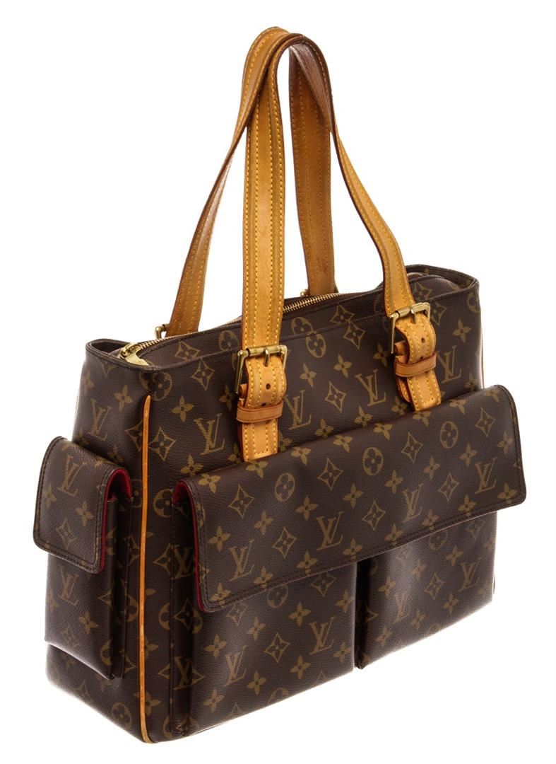 Louis Vuitton Brown Monogram Leather Viva Cite GM Top Handle Bag. All available information is listed in the description and shown in the photos. Louis Vuitton Brown Monogram Leather Viva Cite GM Top Handle Bag with brass hardware, dual shoulder straps, leather trim embellishment & three exterior pockets, alcantara lining & dual interior pockets, adjustable tan handles, zip closure at top. Height: 11" Width: 15.5" Depth: 4", Shoulder Strap Drop: 7.5" / 27.94 x 39.37 x 10.16 Cm