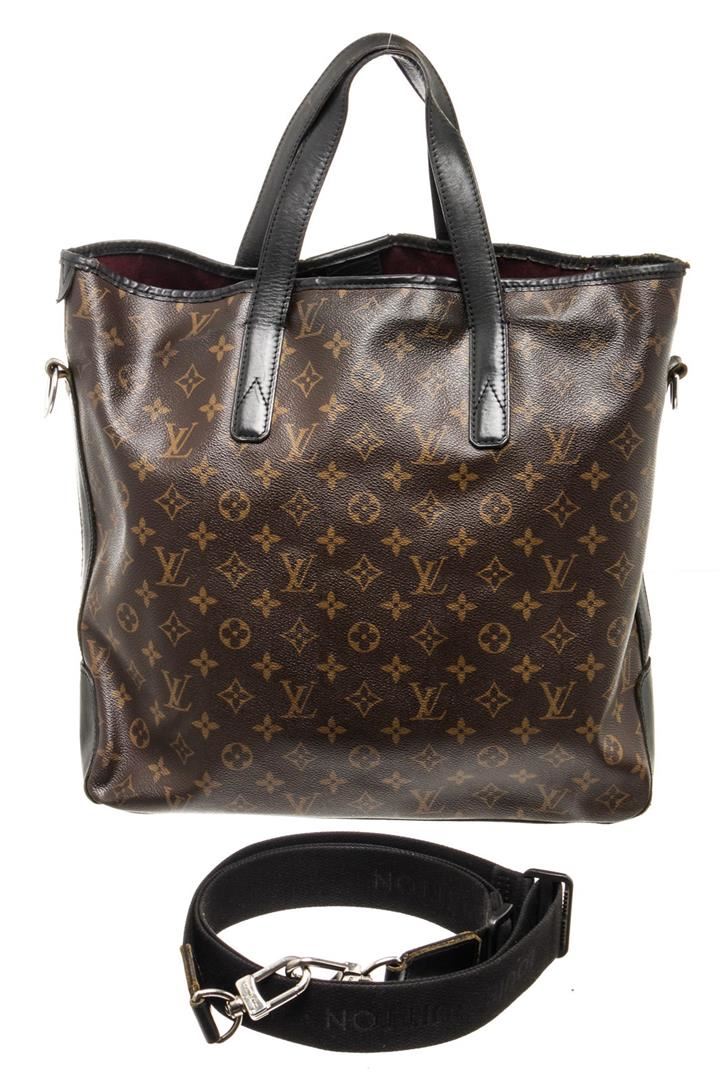 Louis Vuitton Brown Monogram Macassar Davis Tote Bag with monogram canvas, gold-tone hardware, interior zip pocket, top handle, shoulder strap and snap closure.