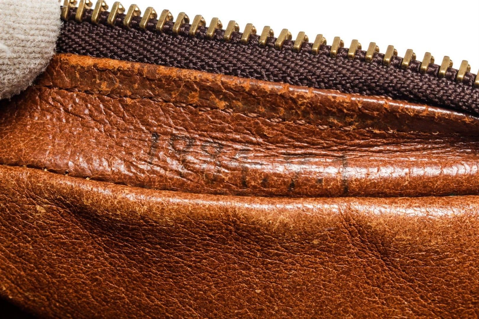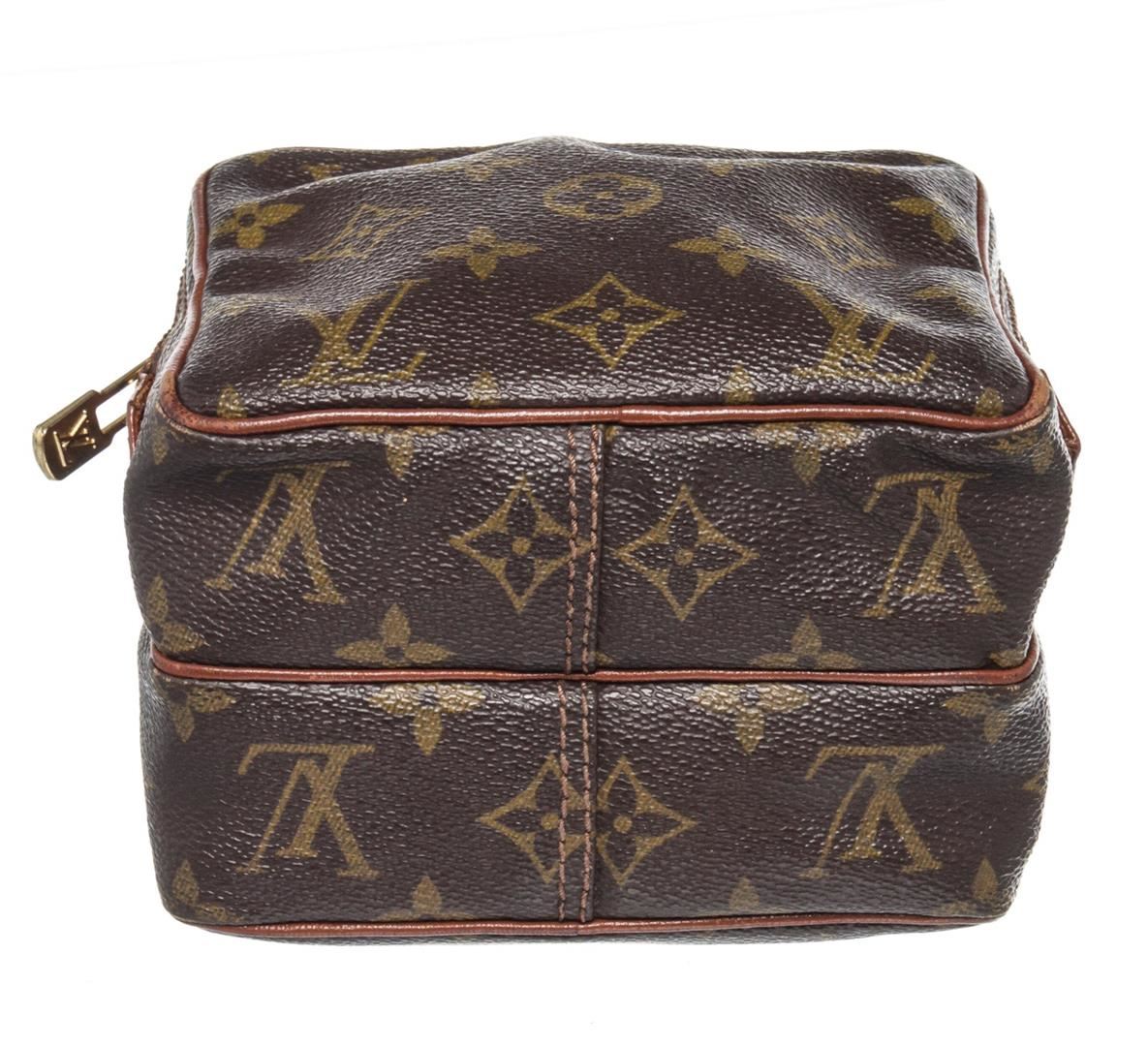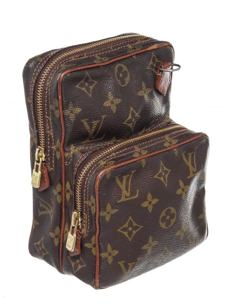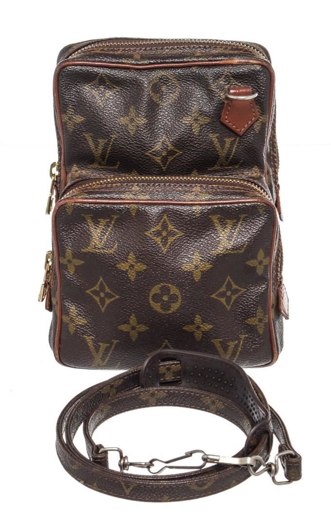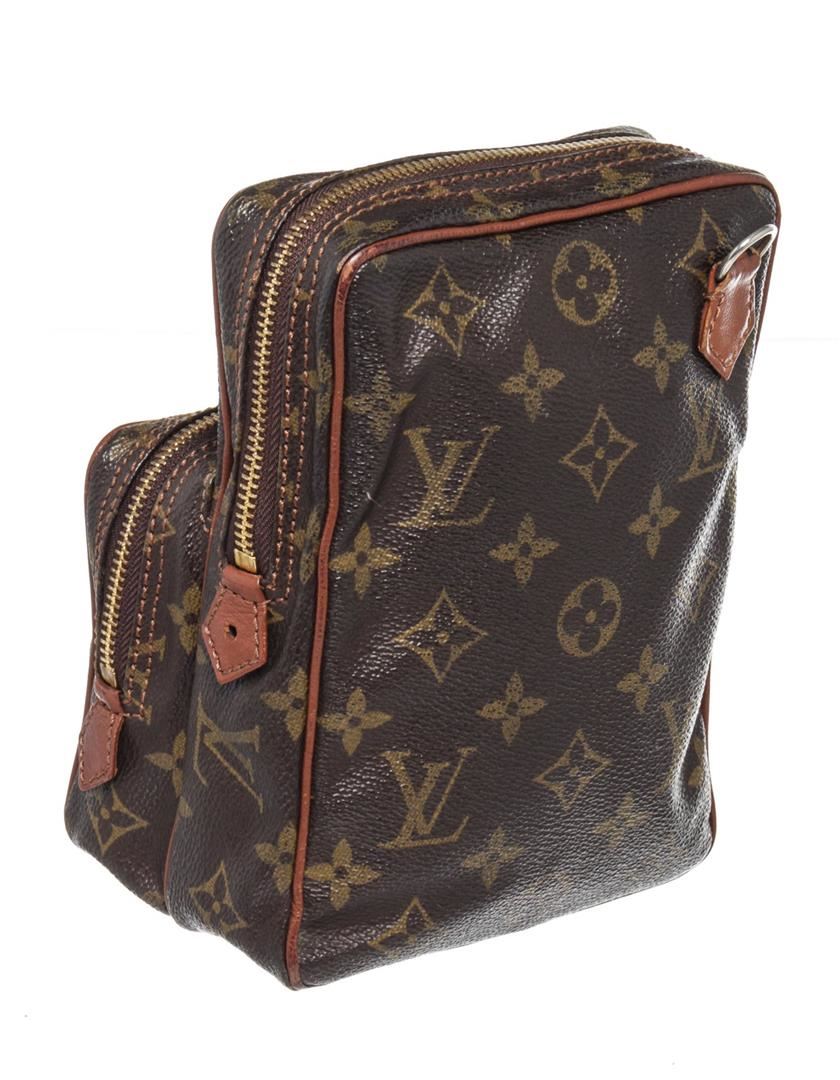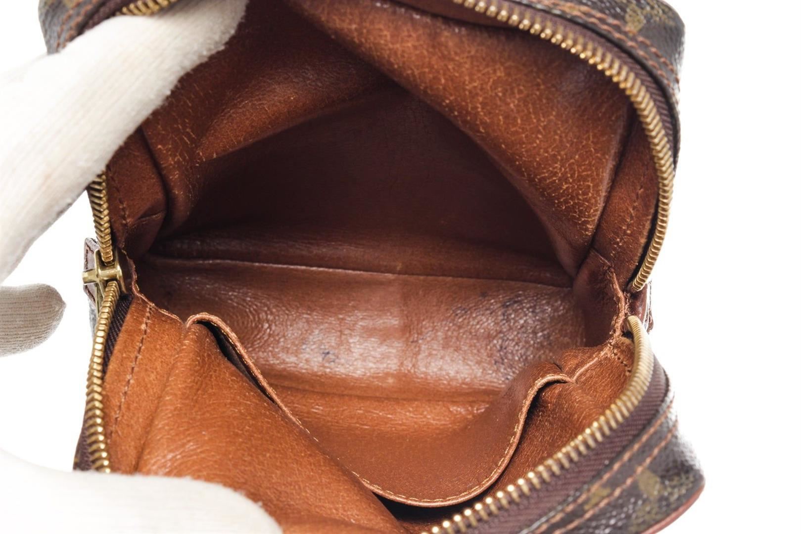 Louis Vuitton Brown Monogram Mini Amazon Shoulder Bag with monogram canvas, gold-tone hardware, trim tan vachetta leather, exterior zip pocket, shoulder strap and zipper closure.