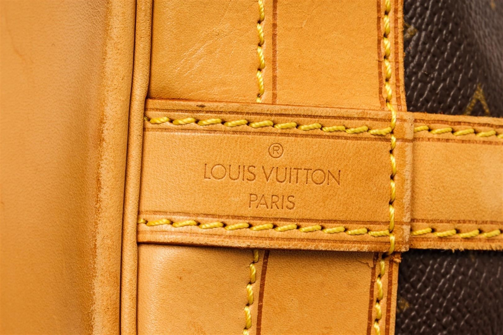 Louis Vuitton Brown Monogram Noe PM Shoulder Bag. All available information is listed in the description and shown in the photos. Louis Vuitton Brown Monogram Noe PM Shoulder Bag with brown coated canvas, brass hardware, single adjustable shoulder strap, leather trim embellishment, canvas lining, drawstring closure at front. Height: 12" Width: 10.5" Depth: 7.5", Shoulder Strap Drop Max: 11" / 30.48 x 26.67 x 19.05 Cm