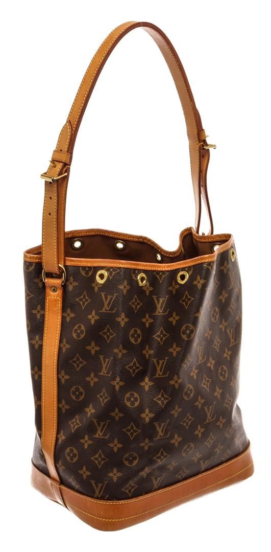 Louis Vuitton Brown Monogram Noe Shoulder Bag. All available information is listed in the description and shown in the photos. Louis Vuitton Brown Monogram Noe Shoulder Bag with this classic bucket style shoulder bag is crafted of louis vuitton monogram on toile canvas. the bag features vachetta cowhide leather including a solid base, a shoulder strap and top cinch strap with polished brass hardware. this opens to a fabric interior. Height: 14.00" Width: 8.00" Length: 11.00", Drop: 10.00" / 35.56 x 20.32 x 27.94 Cm