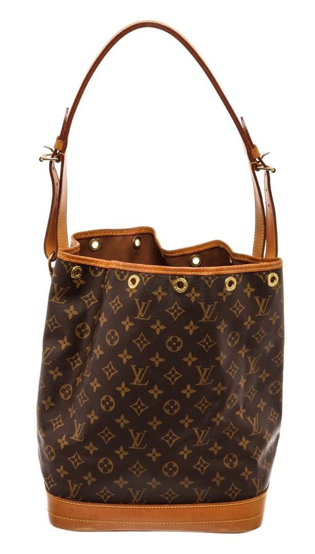 Louis Vuitton Brown Monogram Noe Shoulder Bag. All available information is listed in the description and shown in the photos. Louis Vuitton Brown Monogram Noe Shoulder Bag with this classic bucket style shoulder bag is crafted of louis vuitton monogram on toile canvas. the bag features vachetta cowhide leather including a solid base, a shoulder strap and top cinch strap with polished brass hardware. this opens to a fabric interior. Height: 14.00" Width: 8.00" Length: 11.00", Drop: 10.00" / 35.56 x 20.32 x 27.94 Cm