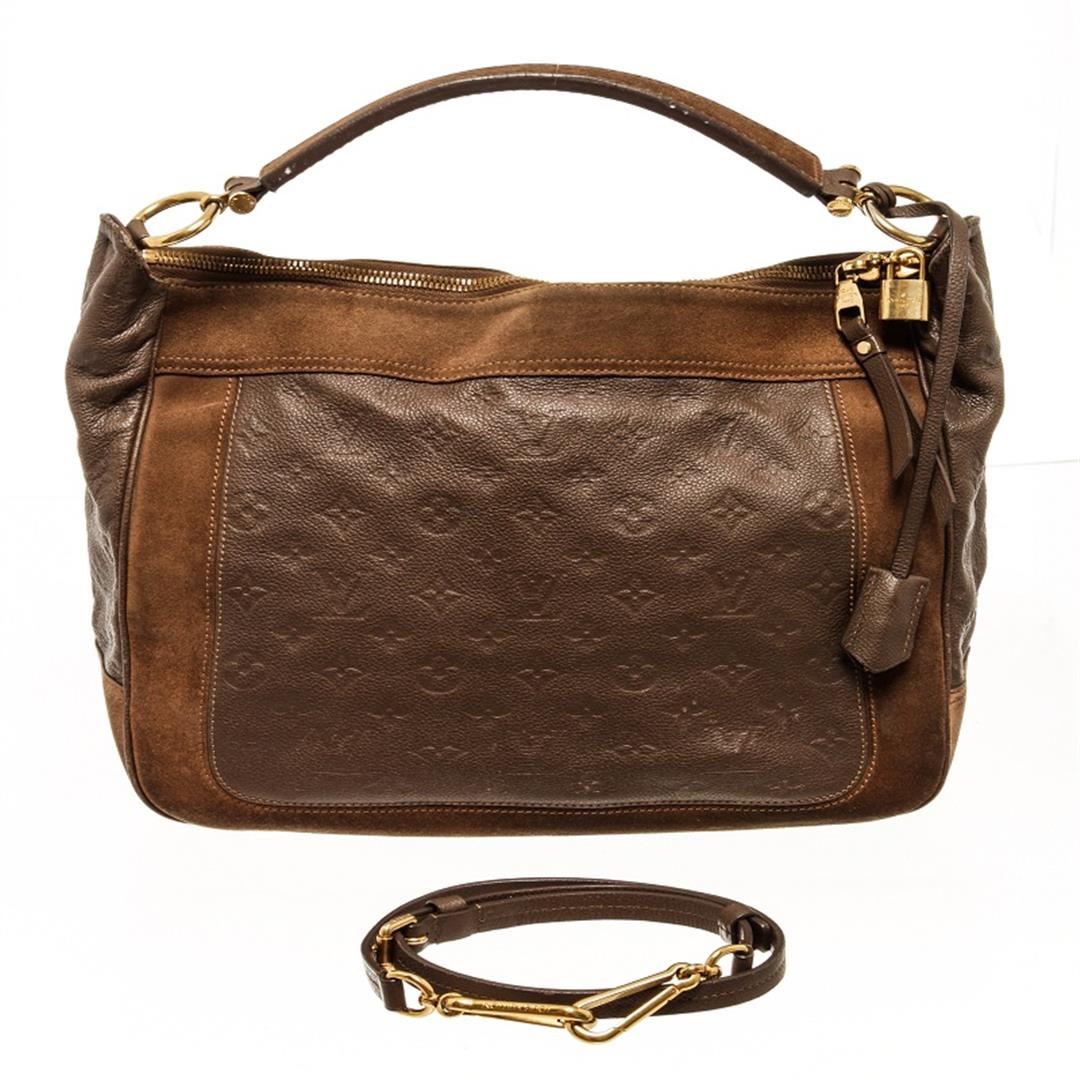 One Louis Vuitton Brown Monogram Odesius Hobo Bag. Item is sold AS-IS. All available information is listed in the description and shown in the photo. Louis Vuitton brown monogram Odesius hobo bag with leather and suede exterior, gold-tone hardware, two flat pockets, one zip pocket, flat leather shoulder strap and a removable, adjustable shoulder strap, two-way zip closure, fine Louis Vuitton striped textile lining. Height: 12" Width: 5.5" Depth: 14", Handle Drop: / 30.48 x 13.97 x 35.56 Cm