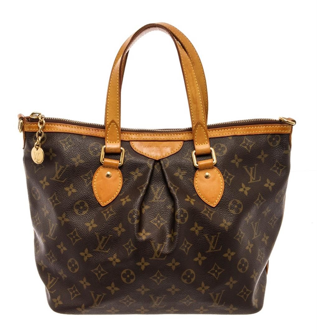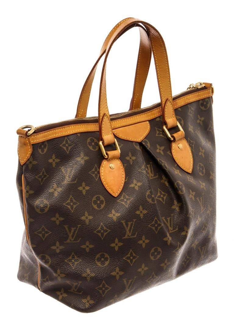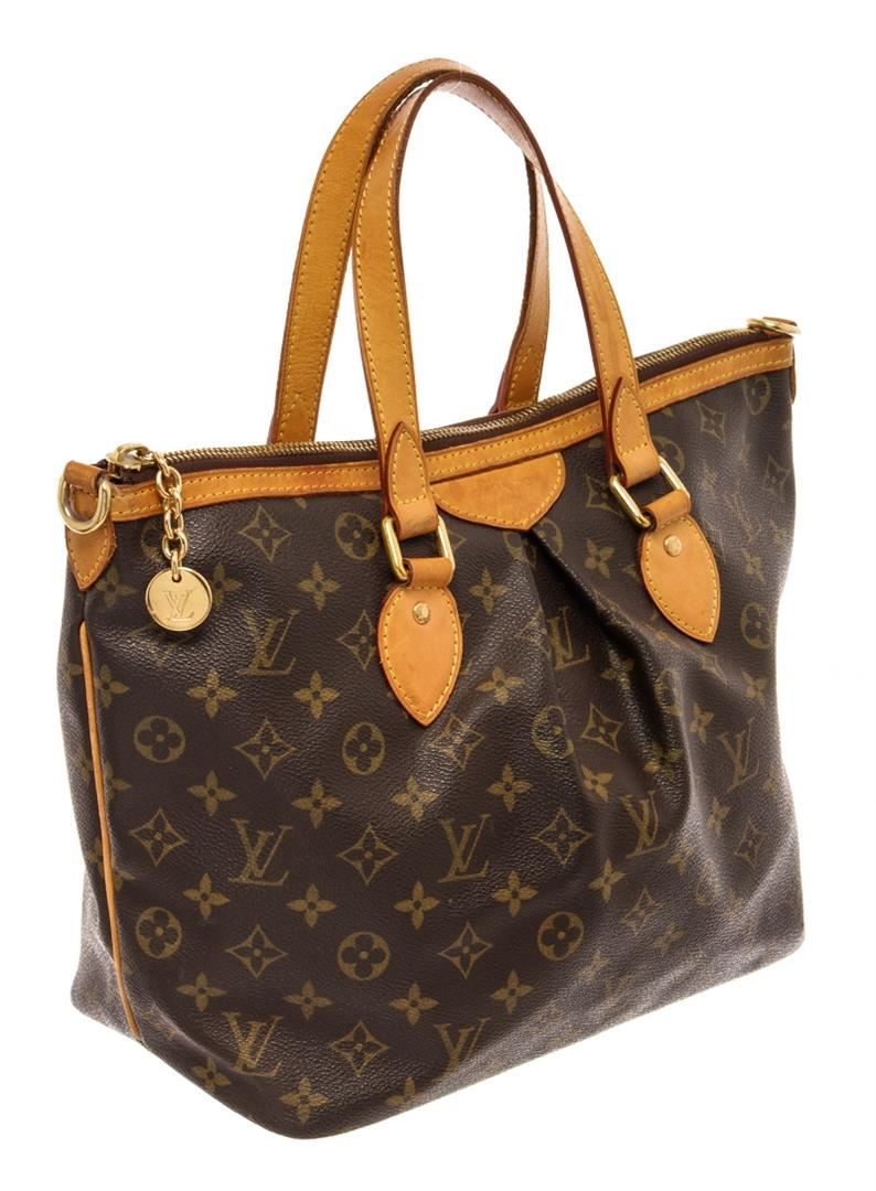Louis Vuitton Brown Monogram Palermo PM Shoulder Bag. All available information is listed in the description and shown in the photos. Louis Vuitton Brown Monogram Palermo PM Shoulder Bag with gold-tone hardware, single shoulder strap, canvas lining & three interior pockets, zip closure at top. Height: 10.25" Width: 15" Depth: 6.5", Shoulder Strap Drop: 18.25" / 26.03 x 38.1 x 16.51 Cm