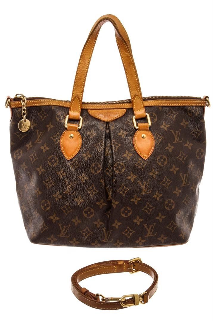 Louis Vuitton Brown Monogram Palermo PM Shoulder Bag. All available information is listed in the description and shown in the photos. Louis Vuitton Brown Monogram Palermo PM Shoulder Bag with gold-tone hardware, single shoulder strap, canvas lining & three interior pockets, zip closure at top. Height: 10.25" Width: 15" Depth: 6.5", Shoulder Strap Drop: 18.25" / 26.03 x 38.1 x 16.51 Cm