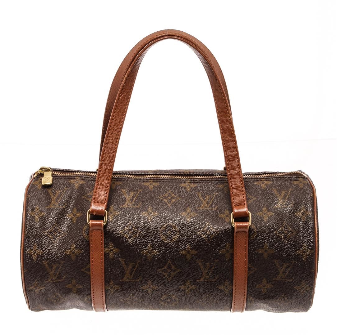 Louis Vuitton Brown Monogram Papillion 30 Shoulder Bag. All available information is listed in the description and shown in the photos. Louis Vuitton Brown Monogram Papillion 30 Shoulder Bag with brown, printed, brass hardware, dual shoulder straps, leather trim embellishment, leather lining, zip closure at top Height: 8.5" Width: 11.25" Depth: 5.25" Shoulder Strap Drop: 6.75" / Height: 21.59" Width: 28.57" Depth: 13.33" Shoulder Strap Drop: 17.14"