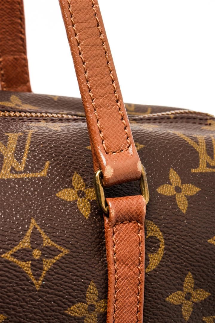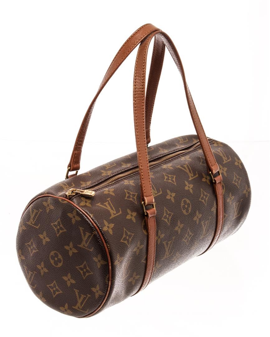 Louis Vuitton Brown Monogram Papillion 30 Shoulder Bag. All available information is listed in the description and shown in the photos. Louis Vuitton Brown Monogram Papillion 30 Shoulder Bag with brown, printed, brass hardware, dual shoulder straps, leather trim embellishment, leather lining, zip closure at top Height: 8.5" Width: 11.25" Depth: 5.25" Shoulder Strap Drop: 6.75" / Height: 21.59" Width: 28.57" Depth: 13.33" Shoulder Strap Drop: 17.14"