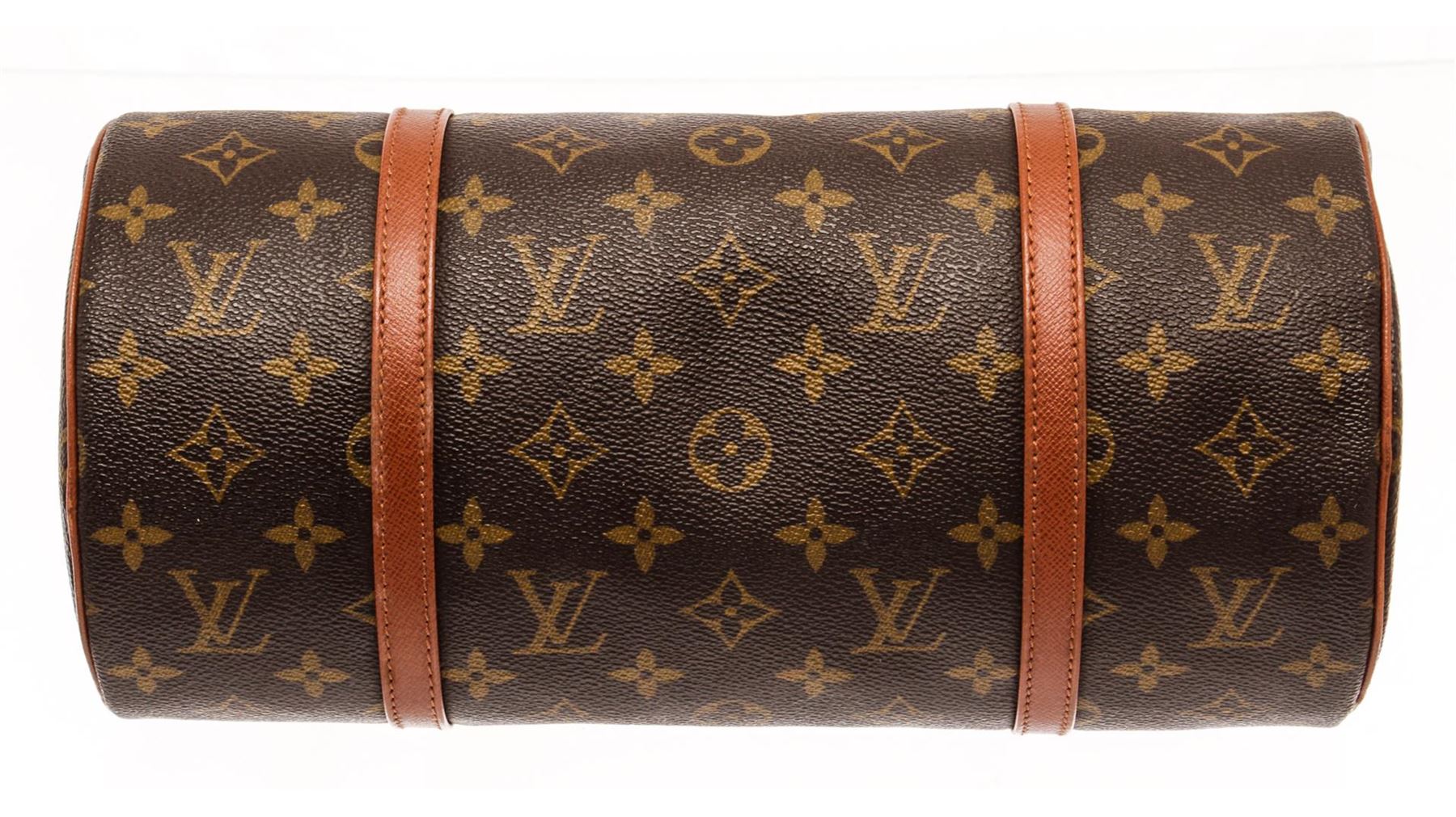 Louis Vuitton Brown Monogram Papillon 30 Shoulder Bag. All available information is listed in the description and shown in the photos. Louis Vuitton Brown Monogram Papillon 30 Shoulder Bag with brown, printed, brass hardware, dual shoulder straps, leather trim embellishment, leather lining, zip closure at top Height: 8.5" Width: 11.25" Depth: 5.25" Shoulder Strap Drop: 6.75" / Height: 21.59" Width: 28.57" Depth: 13.33" Shoulder Strap Drop: 17.14"