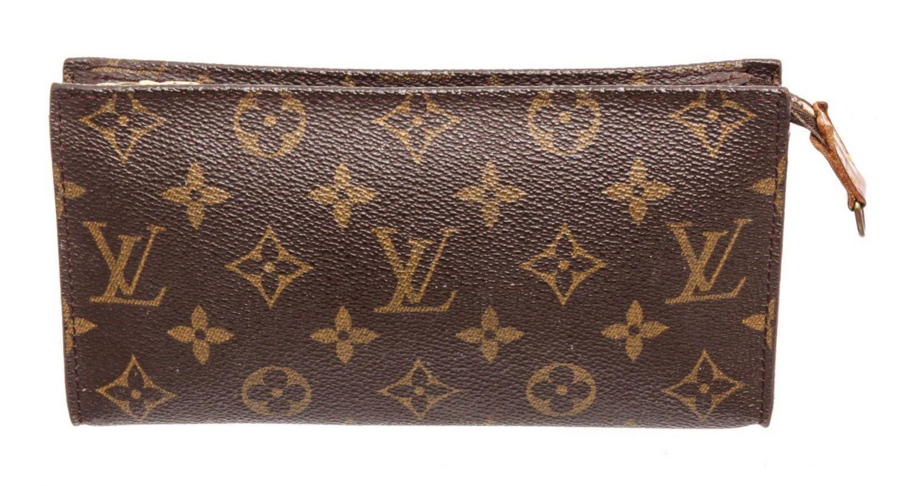 Louis Vuitton Brown Monogram Pouch Wallet. Louis Vuitton Brown Monogram Pouch Wallet with gold-tone hardware, tan vachetta leather trim, interior zip pockets, canvas lining, and zip closure. Measurements: Length: 4 in / 10 cm Width: 7.75 in / 20 cm