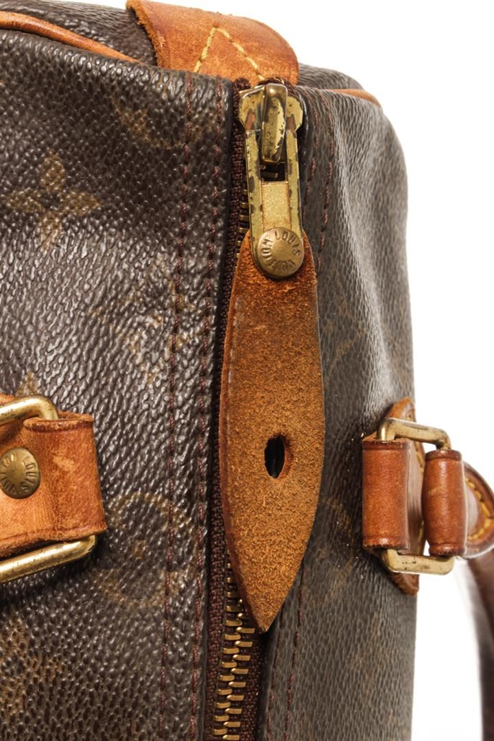 One Louis Vuitton Brown Monogram Speedy 25 Handbag. Item is sold AS-IS. All available information is listed in the description and shown in the photo. Louis Vuitton Brown Monogram Speedy 25 Handbag with gold tone hardware, monogram canvas, vachetta handles and trim, a top zip closure, and an interior pocket. 7.5" L x 9.8" W x 5.9" D, 3.5" drop / 19.05 L x 24.89 W x 14.98 D CM, 8.89 CM drop
