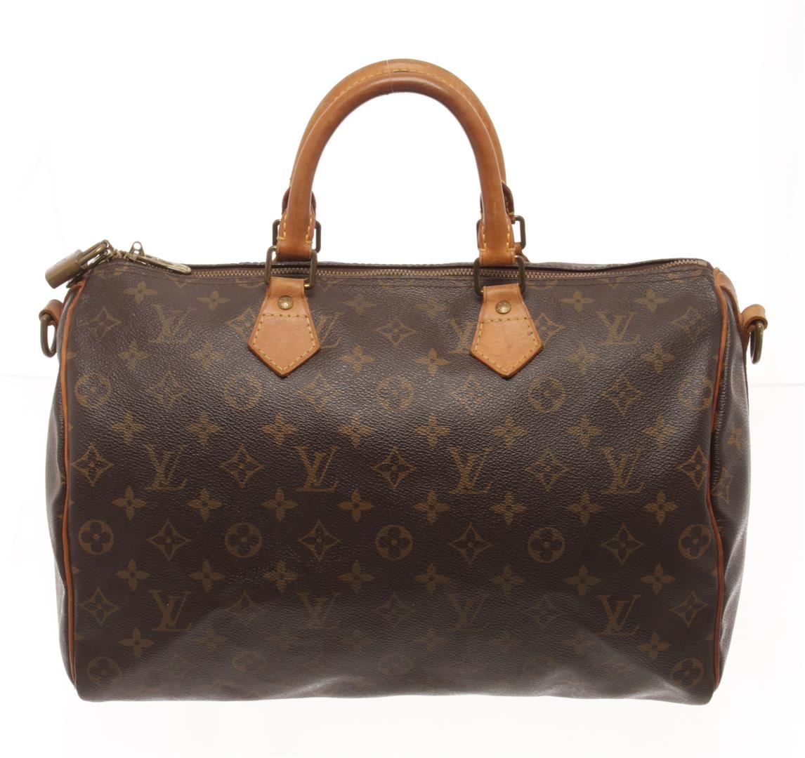 One Louis Vuitton Brown Monogram Speedy 35 Bandouliere. Item is sold AS-IS. All available information is listed in the description and shown in the photo. louis vuitton brown monogram canvas speedy 35 bandoulie satchel bag with gold-tone hardware, internal slip pocket, leather trim, two rolled top handles, main compartment top zip fastening. Depth 7.9 in, Handle 3.9 in, Height 9.1 in, Width 13.8 in / Depth 20 cm, Handle 10 cm, Height 23 cm, Width 35 cm