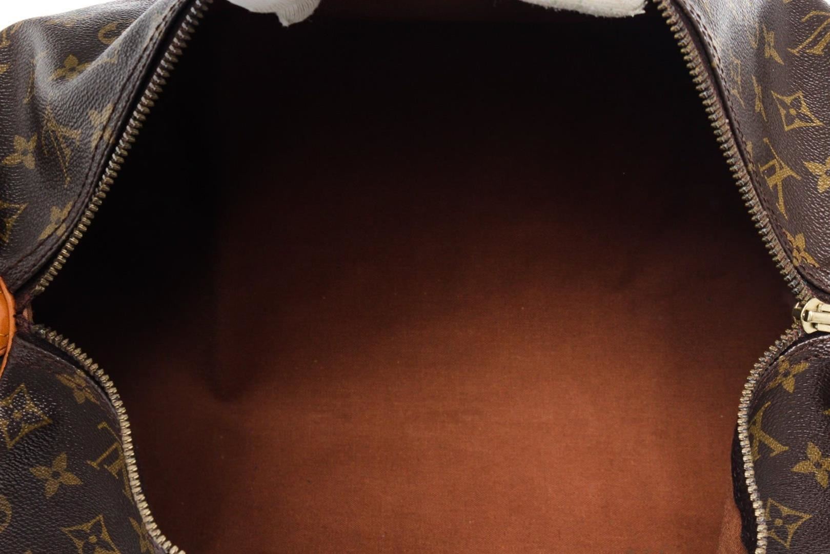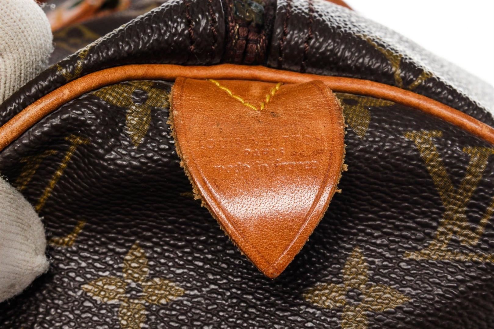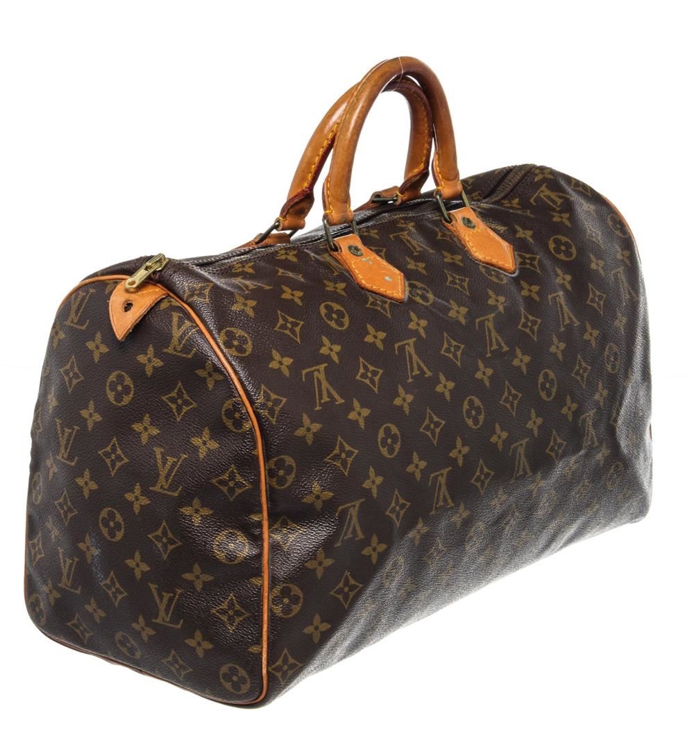 Louis Vuitton Brown Monogram Speedy 40cm Satchel Bag with monogram canvas gold-tone hardware, trim tan vachetta leather, dual top handle and zipper closure.