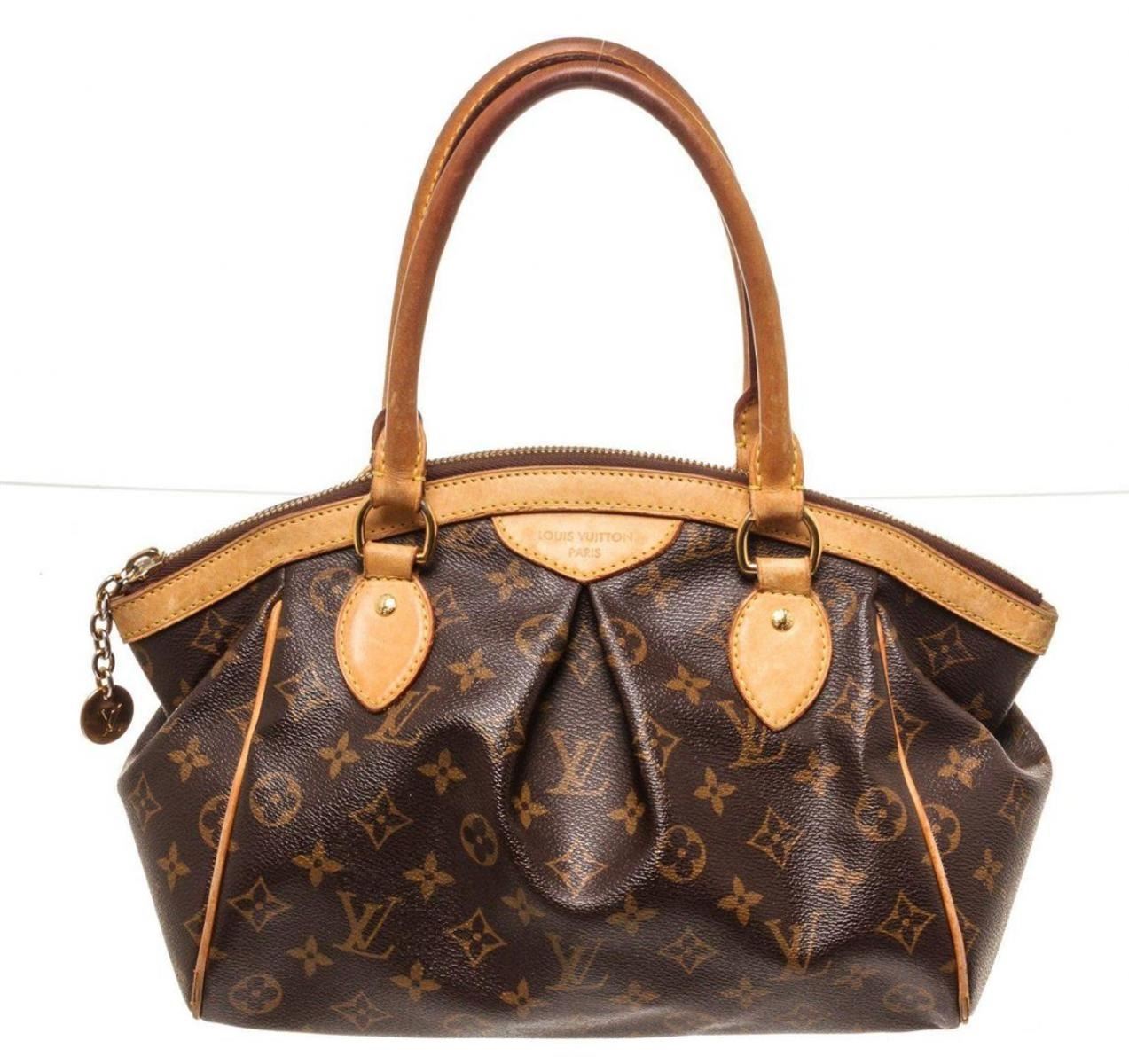Louis Vuitton Brown Monogram Tivoli PM Shoulder Bag. Louis Vuitton Brown Monogram Tivoli PM Shoulder Bag with material monogram canvas, gold-tone hardware, trim tan vachetta leather, interior slip pocket, canvas lining, shoulder strap and zipper closure.