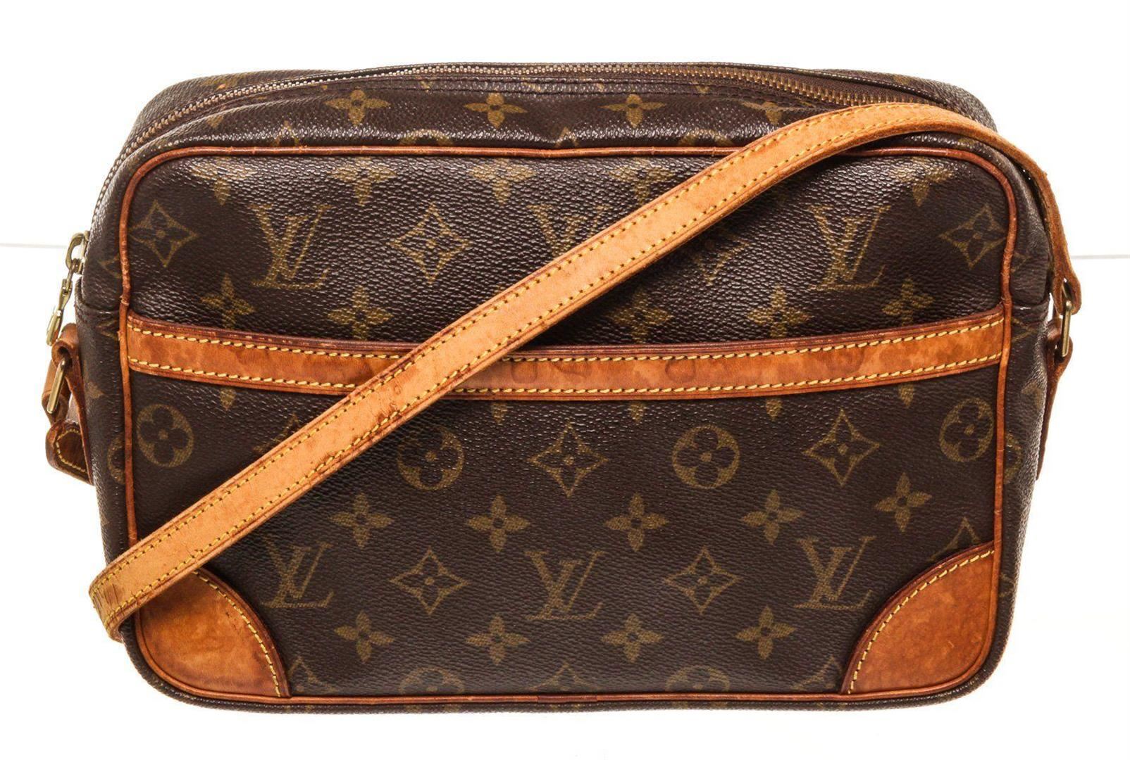 Louis Vuitton Brown Monogram Trocadero 27cm Crossbody Bag with material monogram canvas, gold-tone hardware, trim tan vachetta leather, interior zip pockets shoulder strap and zipper closure.