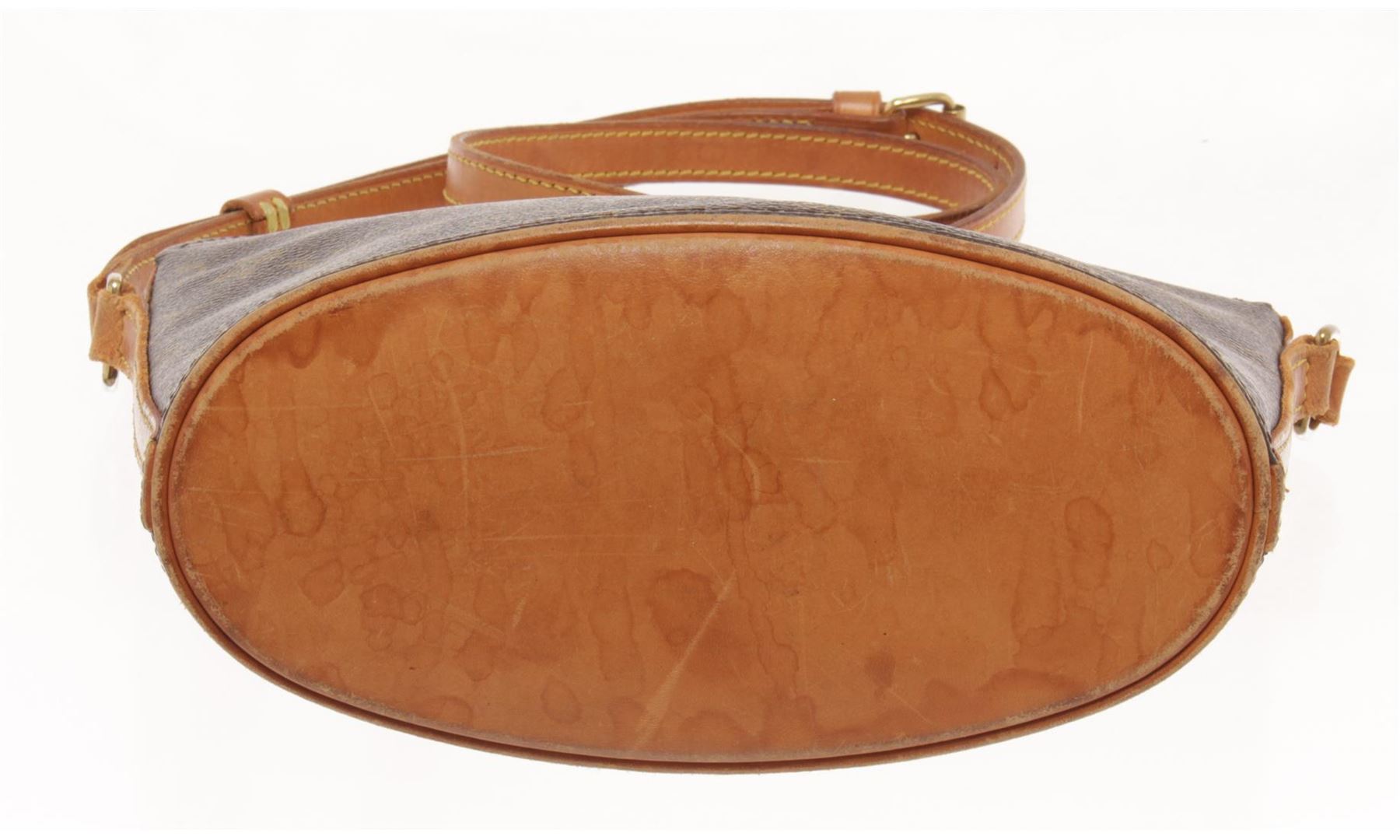 One Louis Vuitton Brown Monogram canvas Drouot Crossbody Bag. Item is sold AS-IS. All available information is listed in the description and shown in the photo. Louis Vuitton Brown Monogram canvas Drouot Crossbody Bag with adjustable shoulder strap, leather lining, interior slip pocket, gold tone hardware, zipper closure. There are some wear and water stains on the vachetta. Please refer to photos. Depth 3.9 in, Height 8.7 in, Width 9.4 in / Depth 10 cm, Height 22 cm, Width 24 cm