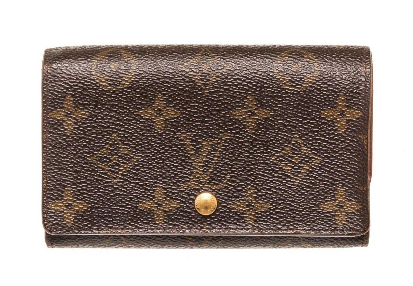 Louis Vuitton Brown Porte Monnaie Wallet. Louis Vuitton Brown Porte Monnaie Wallet with material monogram canvas, gold-tone hardware, trim tan vachetta leather, interior three compartments pocket and snap closure.