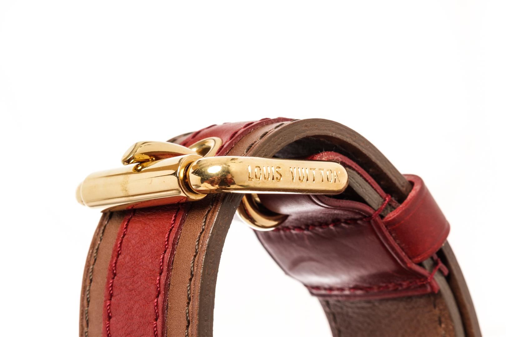 Louis Vuitton Brown Red Leather Aviator Strap. All available information is listed in the description and shown in the photos. Louis Vuitton Brown Red Leather Aviator Limited Edition strap with a red leather stripe, gold tone hardware, buckle closure.