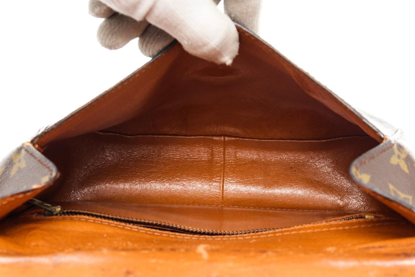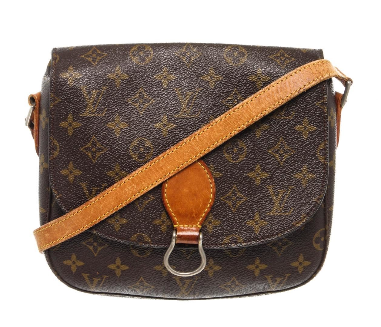 Louis Vuitton Brown St. Cloud MM Crossbody Bag with monogram canvas, gold-tone hardware, trim tan vachetta leather, interior zip pocket, adjustable shoulder strap and push-lock closure.
