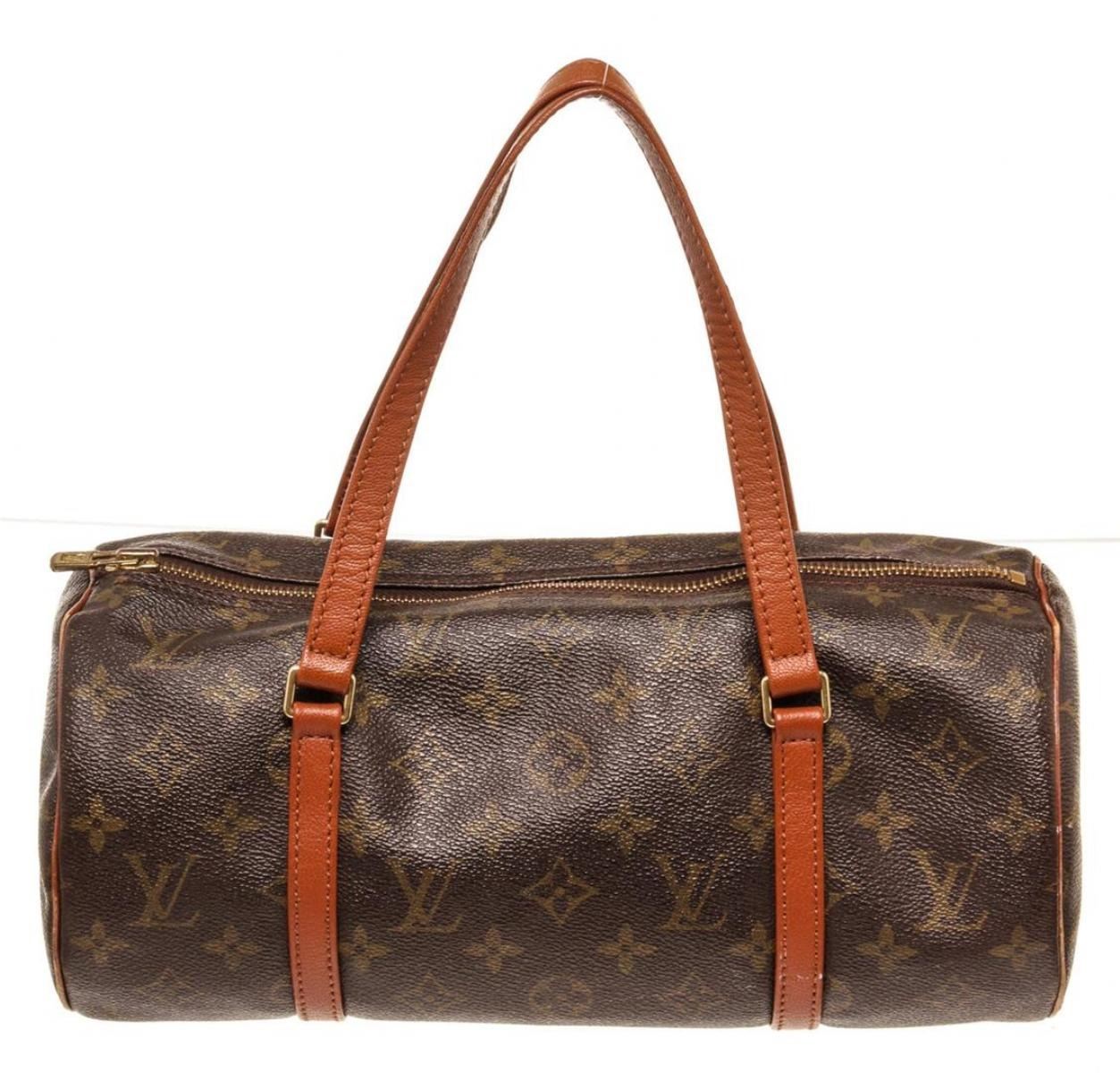 Louis Vuitton Brown Vintage Papillon Shoulder Bag with material monogram canvas, gold-tone hardware, trim tan vachetta leather, leather lining, shoulder strap and zipper closure