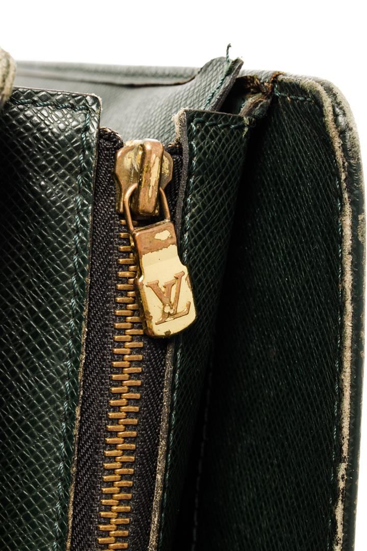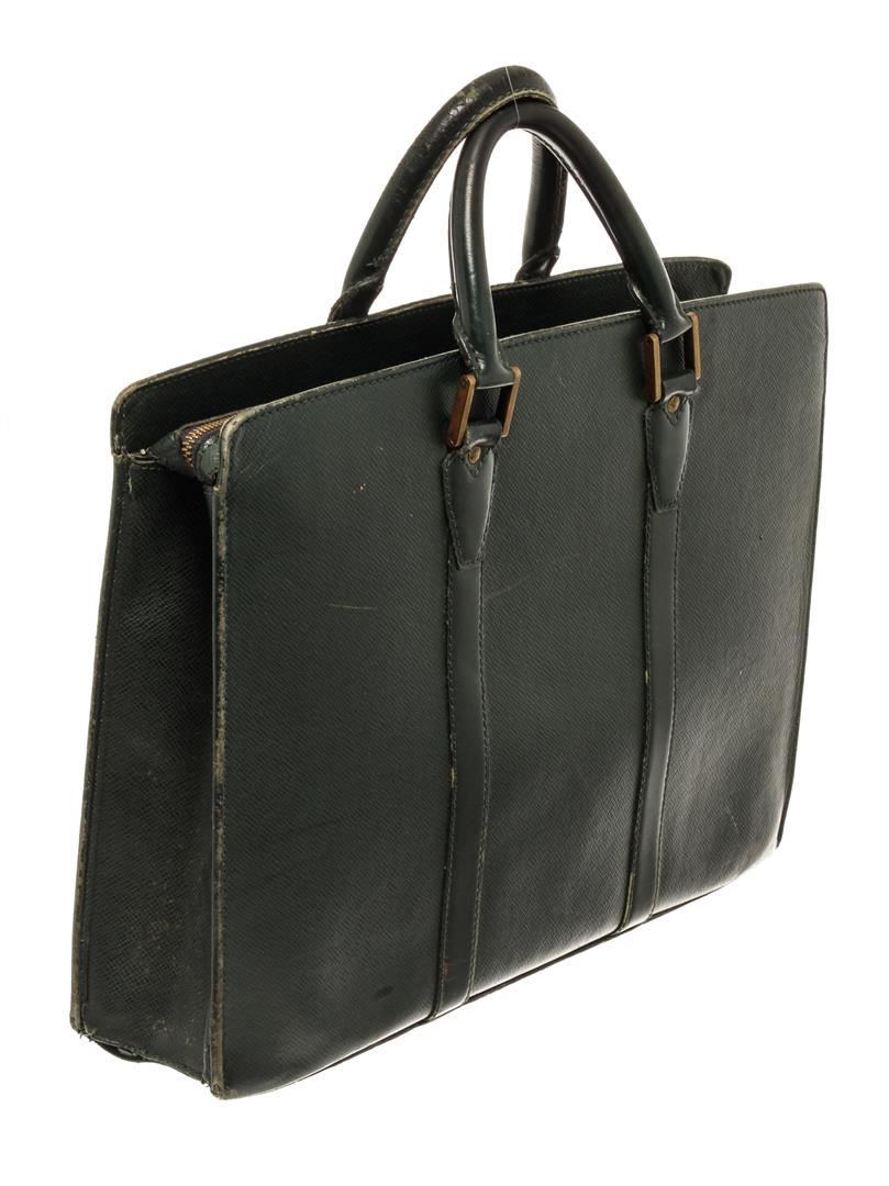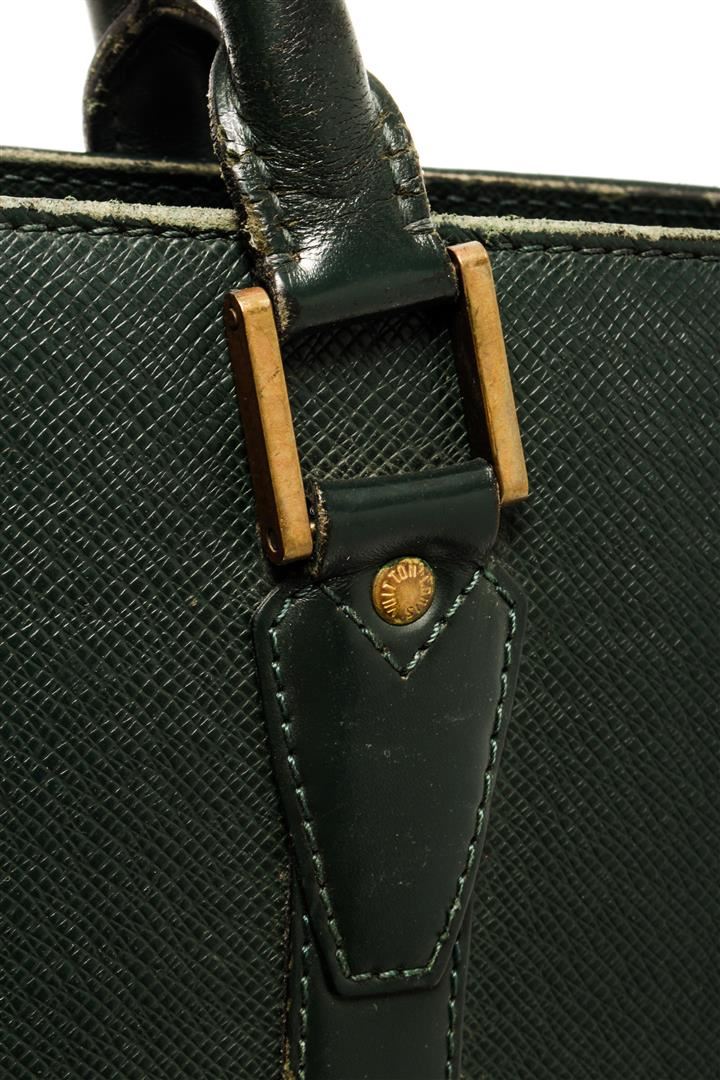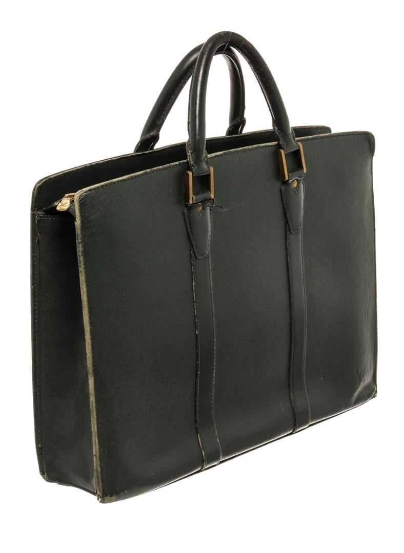 Louis Vuitton Business Bag Travel Bag. Brand: Louis Vuitton, Style: Business Bag, Type: Travel Bag, Exterior color: Green, Exterior material: Taiga, Interior color: Green, Interior material: Canvas, Length: 15, Width: 3.5, Height: 11. Item is sold AS-IS a