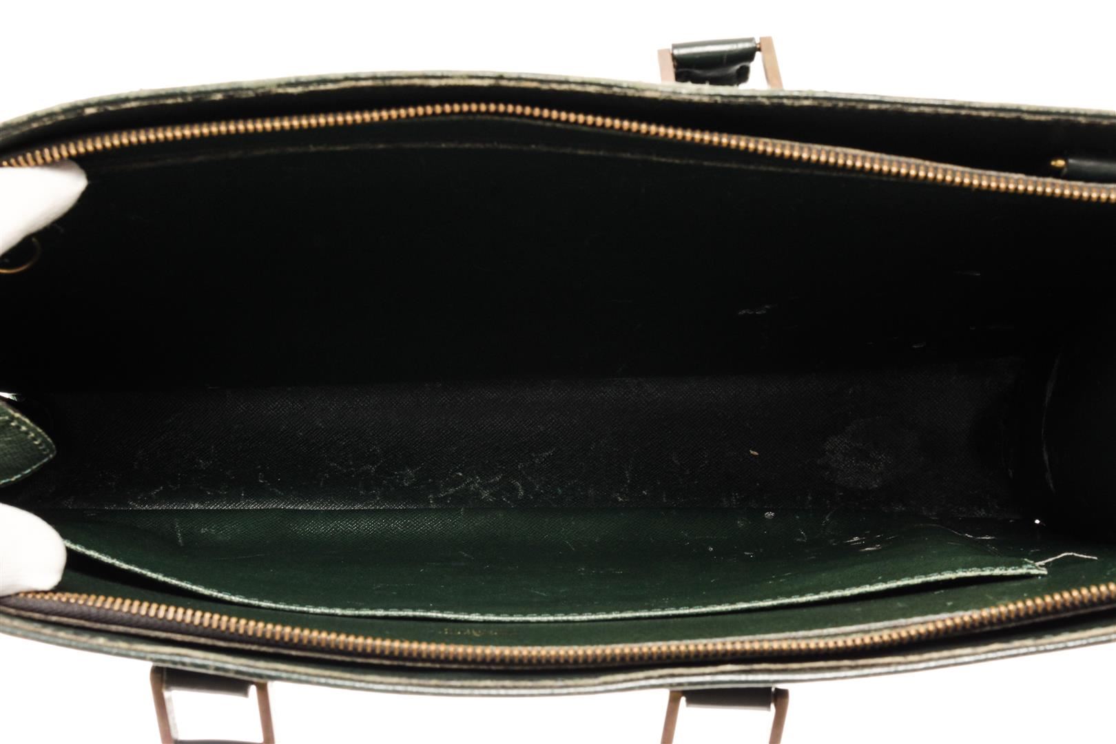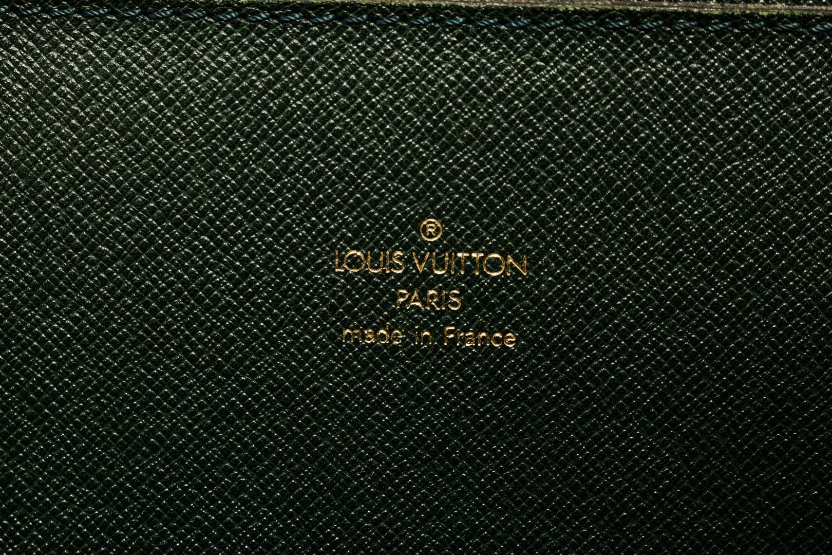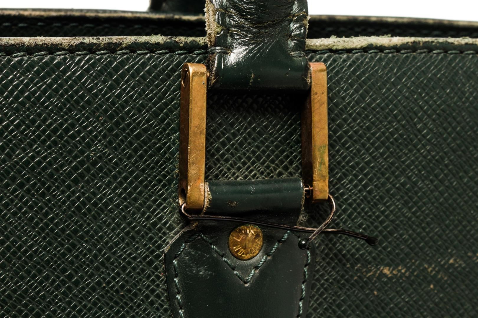 Louis Vuitton Business Bag Travel Bag. Brand: Louis Vuitton, Style: Business Bag, Type: Travel Bag, Exterior color: Green, Exterior material: Taiga, Interior color: Green, Interior material: Canvas, Length: 15, Width: 3.5, Height: 11. Item is sold AS-IS a
