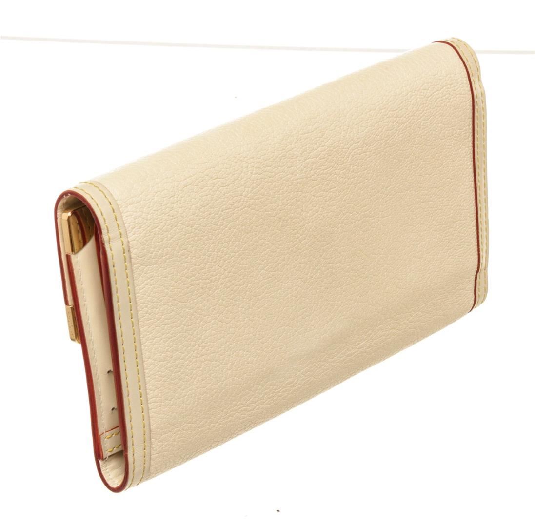 One Louis Vuitton Cream Leather International Wallet. Item is sold AS-IS. All available information is listed in the description and shown in the photo. Louis Vuitton Cream Leather International Wallet with leather, gold-tone hardware, trim tan vachetta leather, interior three compartments pocket and snap closure.