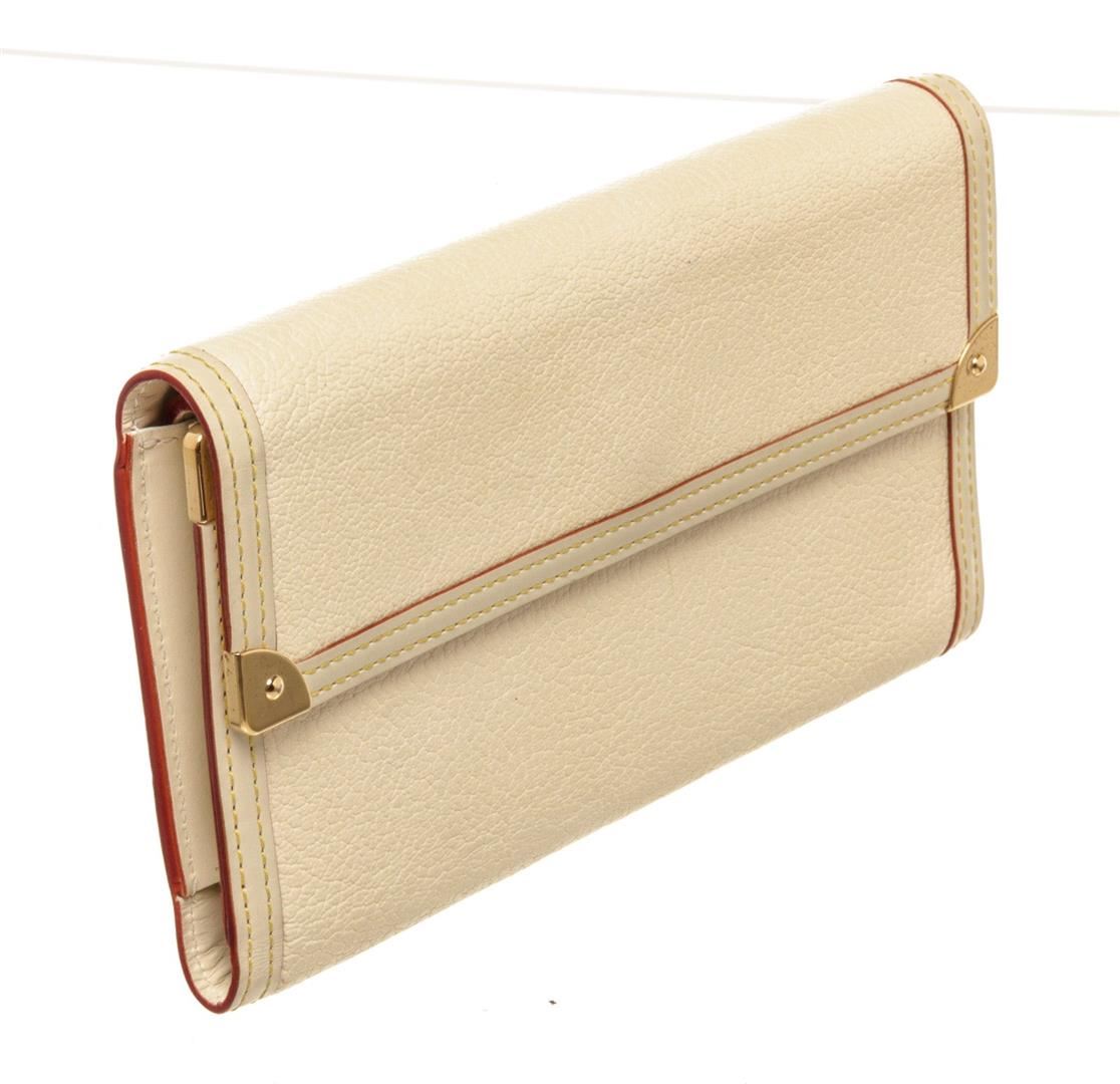 One Louis Vuitton Cream Leather International Wallet. Item is sold AS-IS. All available information is listed in the description and shown in the photo. Louis Vuitton Cream Leather International Wallet with leather, gold-tone hardware, trim tan vachetta leather, interior three compartments pocket and snap closure.