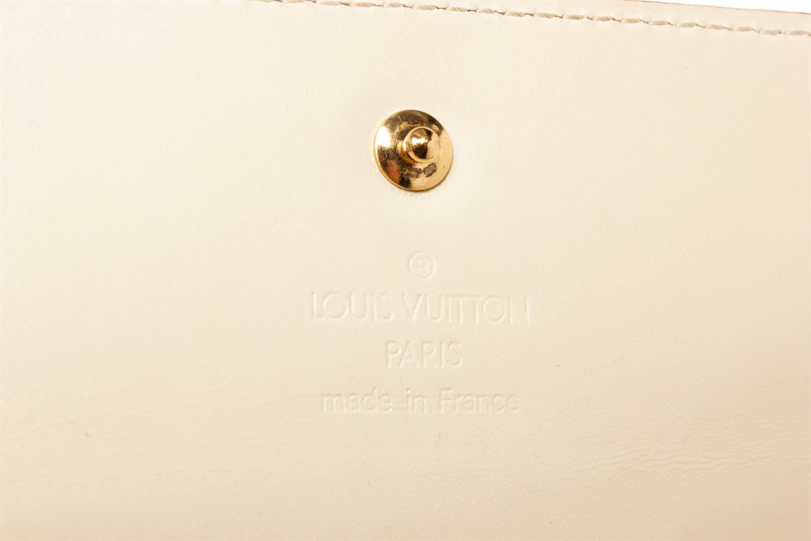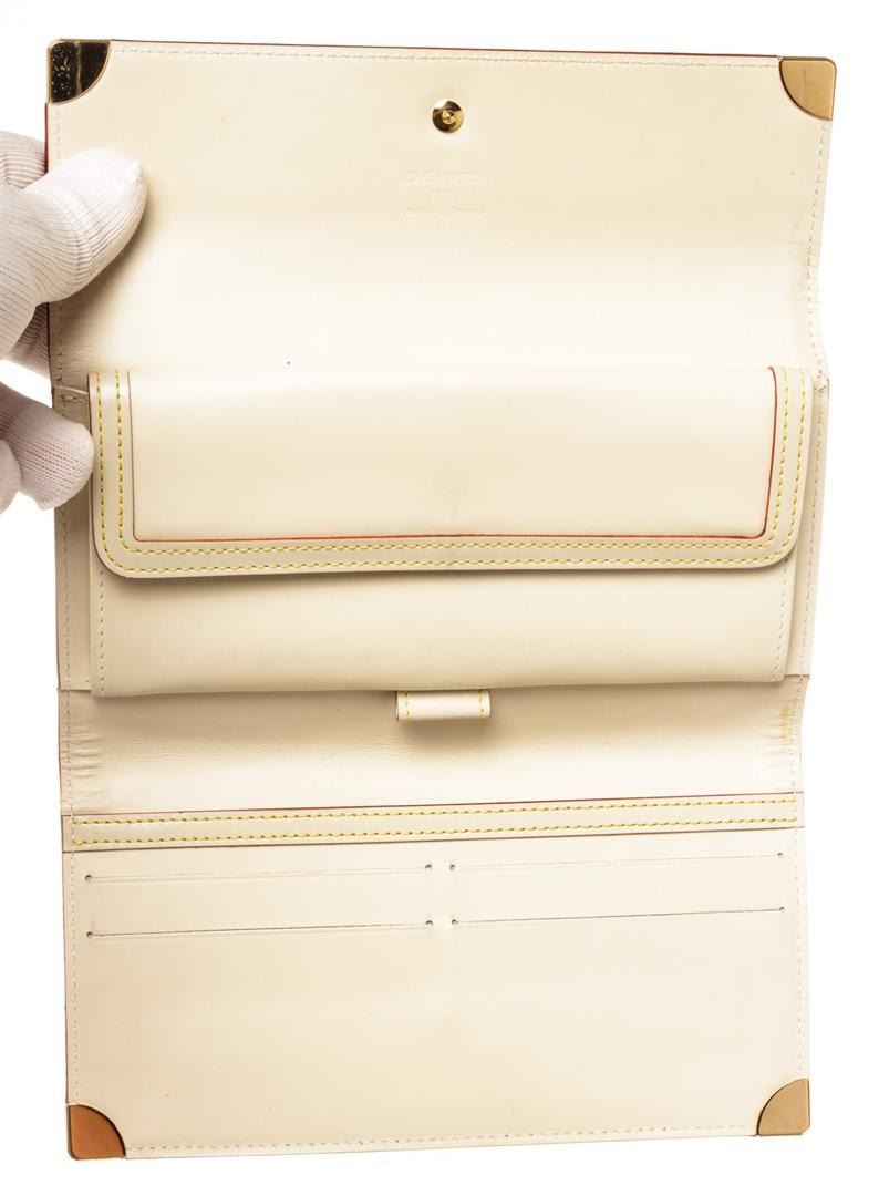 One Louis Vuitton Cream Leather International Wallet. Item is sold AS-IS. All available information is listed in the description and shown in the photo. Louis Vuitton Cream Leather International Wallet with leather, gold-tone hardware, trim tan vachetta leather, interior three compartments pocket and snap closure.