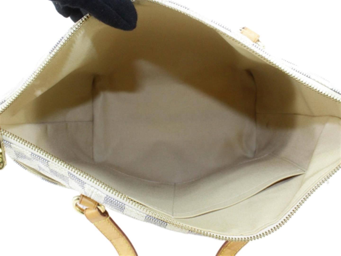 One Louis Vuitton Damier Azur Canvas Leather Totally PM Tote Bag. Item is sold AS-IS. All available information is listed in the description and shown in the photo. Ivory and navy Damier Azur coated canvas Louis Vuitton Totally PM with gold-tone hardware, tan vachetta leather trim, dual flat shoulders straps, dual slit pockets at exterior, neutral canvas lining, dual slit pockets at interior walls and zip closure at top. . Height: 10.5" Width: 15" Depth: 5.5" Shoulder Strap Drop: 9.5"