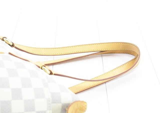 One Louis Vuitton Damier Azur Canvas Leather Totally PM Tote Bag. Item is sold AS-IS. All available information is listed in the description and shown in the photo. Ivory and navy Damier Azur coated canvas Louis Vuitton Totally PM with gold-tone hardware, tan vachetta leather trim, dual flat shoulders straps, dual slit pockets at exterior, neutral canvas lining, dual slit pockets at interior walls and zip closure at top. . Height: 10.5" Width: 15" Depth: 5.5" Shoulder Strap Drop: 9.5"