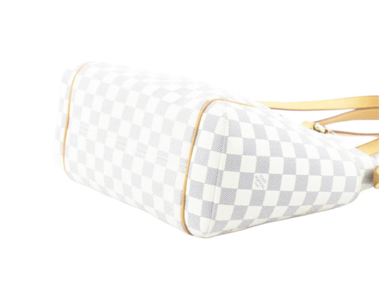 One Louis Vuitton Damier Azur Canvas Leather Totally PM Tote Bag. Item is sold AS-IS. All available information is listed in the description and shown in the photo. Ivory and navy Damier Azur coated canvas Louis Vuitton Totally PM with gold-tone hardware, tan vachetta leather trim, dual flat shoulders straps, dual slit pockets at exterior, neutral canvas lining, dual slit pockets at interior walls and zip closure at top. . Height: 10.5" Width: 15" Depth: 5.5" Shoulder Strap Drop: 9.5"