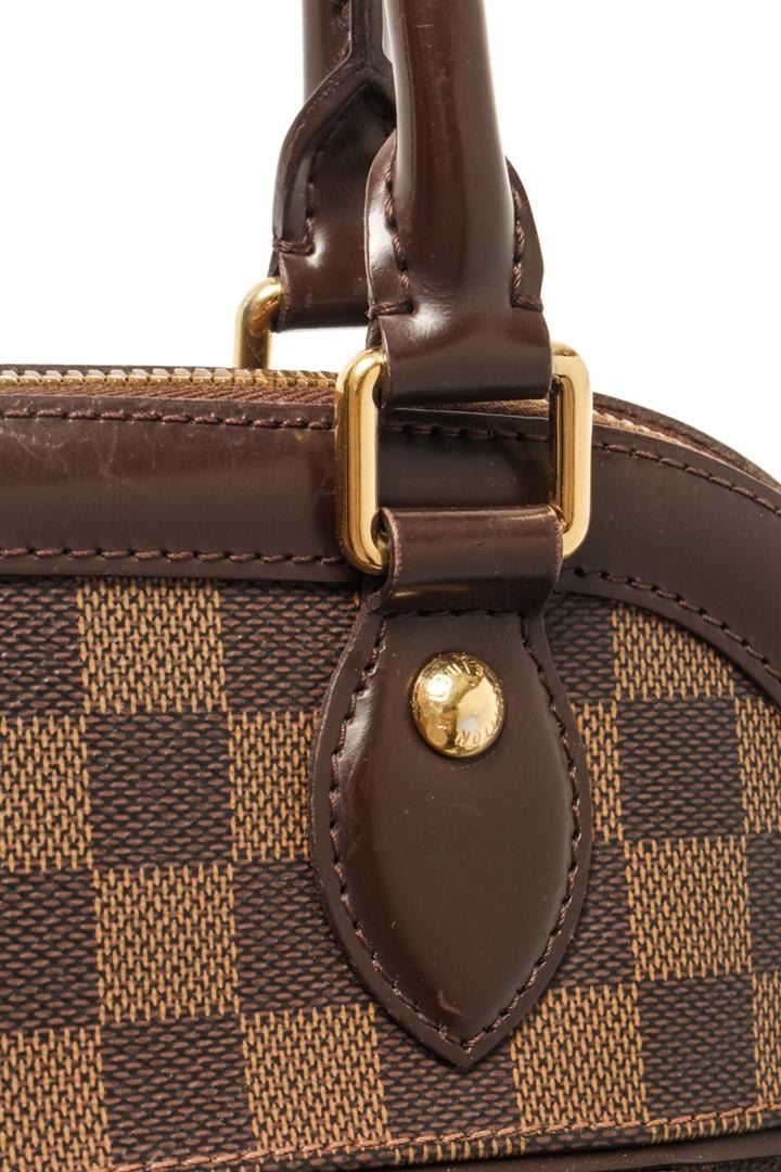 One Louis Vuitton Damier Ebene Canvas And Leather Trevi Pm Bag. Item is sold AS-IS. All available information is listed in the description and shown in the photo. louis vuitton damier ebene canvas and leather trevi pm bag with gold-tone hardware, protective metal feet, and a top zip that open. L:13.38", W:5.90", H:9.44" / Length:34 cm, Width:15 cm, Height:24 cm