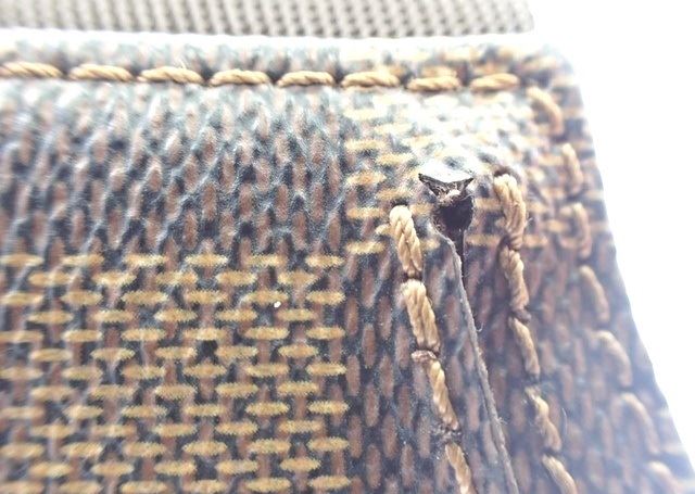 One Louis Vuitton Damier Ebene Canvas Geronimos Waist Bag. Item is sold AS-IS. All available information is listed in the description and shown in the photo. Brown Damier Ebene coated canvas Louis Vuitton Geronimos waist bag with brass hardware, single adjustable waist strap with buckle closure, single pocket at exterior with snap closure, brown canvas lining and zip around closure..