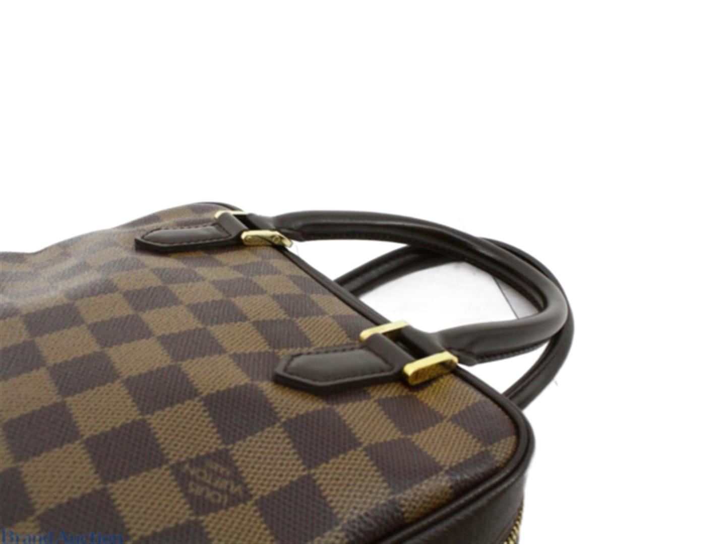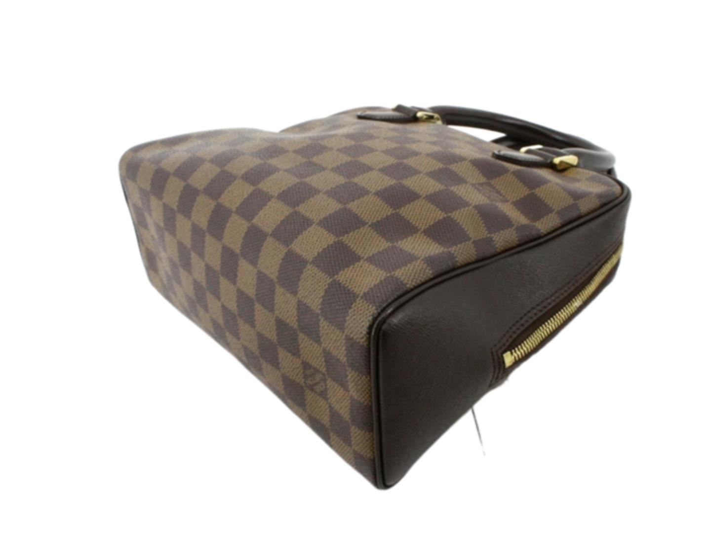 One Louis Vuitton Damier Ebene Canvas Leather Brera Handbag. Item is sold AS-IS. All available information is listed in the description and shown in the photo. Brown Damier Ebene coated canvas Louis Vuitton Brera handbag with gold-tone hardware, dark brown Taiga leather trim, dual rolled top handles, red Alcantara lining, single pocket with zip closure at interior wall and zip closure at top. . 9.5"x4"x8"xBag Drop:4.25"/24.1cmx10.1cmx20.3cmxBag Drop:10.8cm