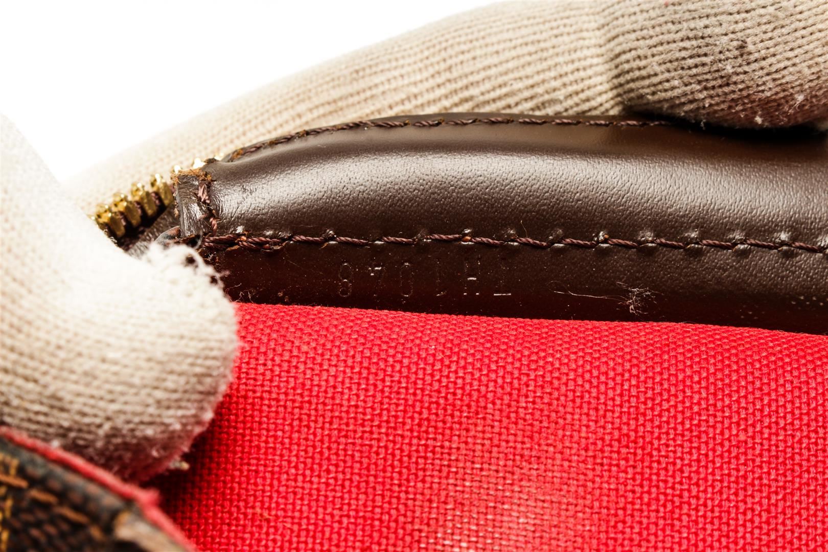 Louis Vuitton Damier Ebene Canvas Leather Chelsea Tote Bag. All available information is listed in the description and shown in the photos. Brown and tobacco Damier Ebene coated canvas Louis Vuitton Chelsea tote bag with gold-tone hardware, brown leather accents, dual flat shoulder straps, red canvas interior, single zip pocket at interior wall and zip closure at top. 16.5"x5.5"x10.5"xBag Drop:12.25"/41.9cmx13.9cmx26.6cmxBag Drop:31.1cm