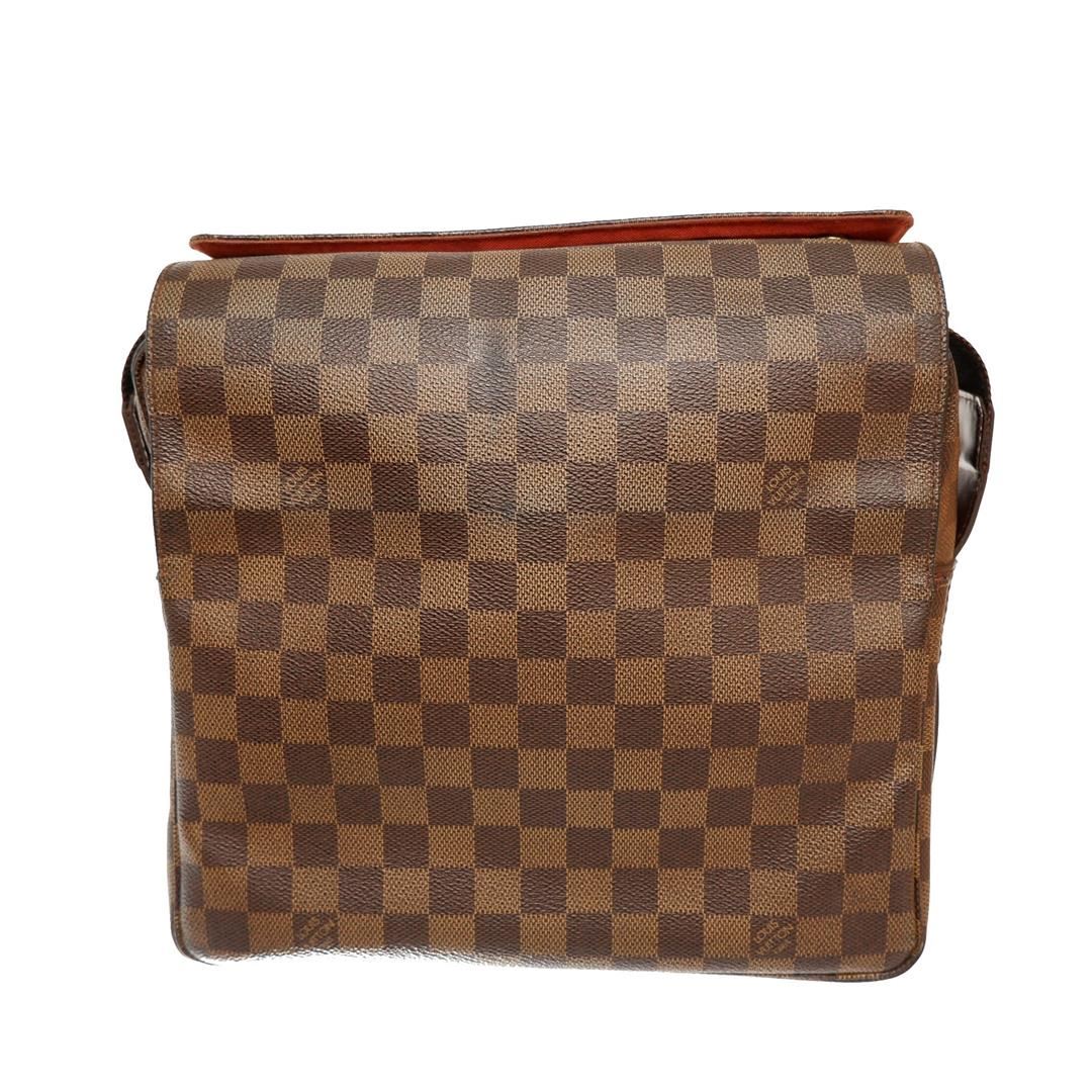 Louis Vuitton Damier Ebene Canvas Leather Naviglio Messenger Bag. All available information is listed in the description and shown in the photos. Brown and tan Damier Ebene coated canvas Louis Vuitton Naviglio messenger bag with gold-tone hardware, walnut leather trim, single adjustable flat shoulder strap, three interior compartments; one with zip closure, red woven lining, single slip pocket at interior wall and dual snap closures at top 13"x3"x11"xBag Drop:21"/33cmx7.6cmx27.9cmxBag Drop:53.3cm