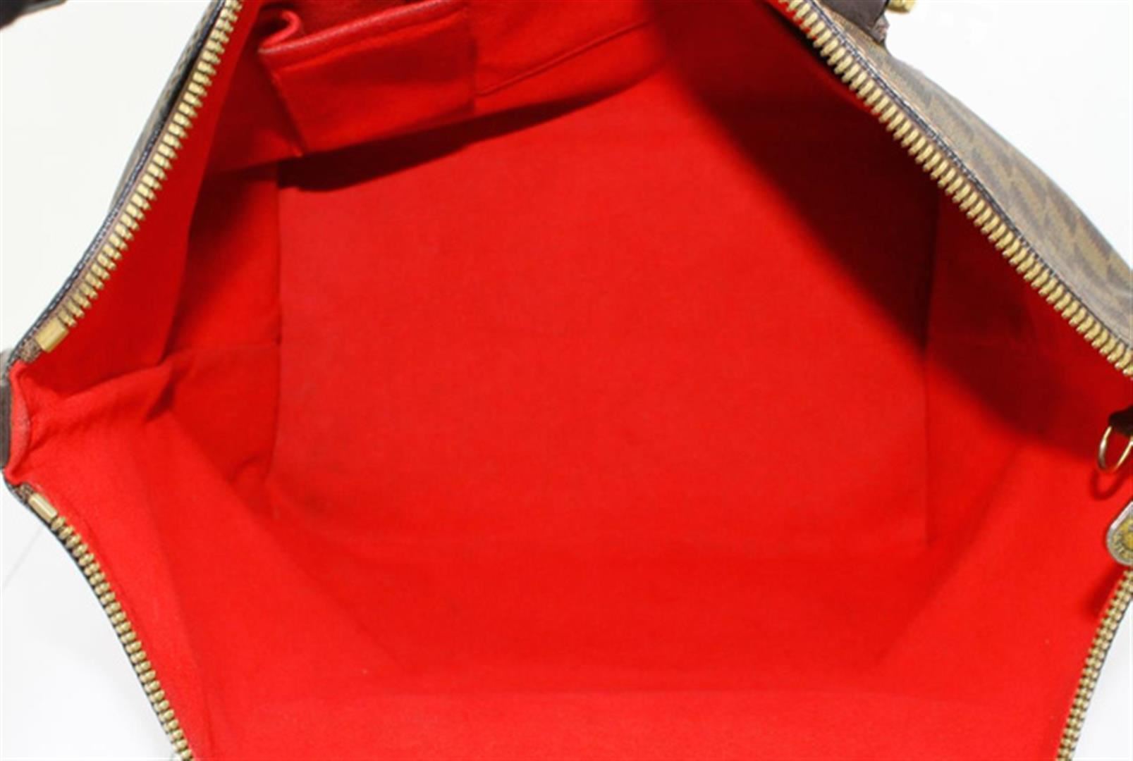 Louis Vuitton Damier Ebene Canvas Leather Saleya MM Tote Bag. All available information is listed in the description and shown in the photos. Brown Damier Ebene coated canvas Louis Vuitton Saleya MM with gold-tone hardware, dual rolled shoulder straps, dark brown leather trim, red Alcantara lining, dual interior slit pockets and zip closure at top. 17.5"x7.5"x11.5"xBag Drop:7"/44.4cmx19cmx29.2cmxBag Drop:17.7cm