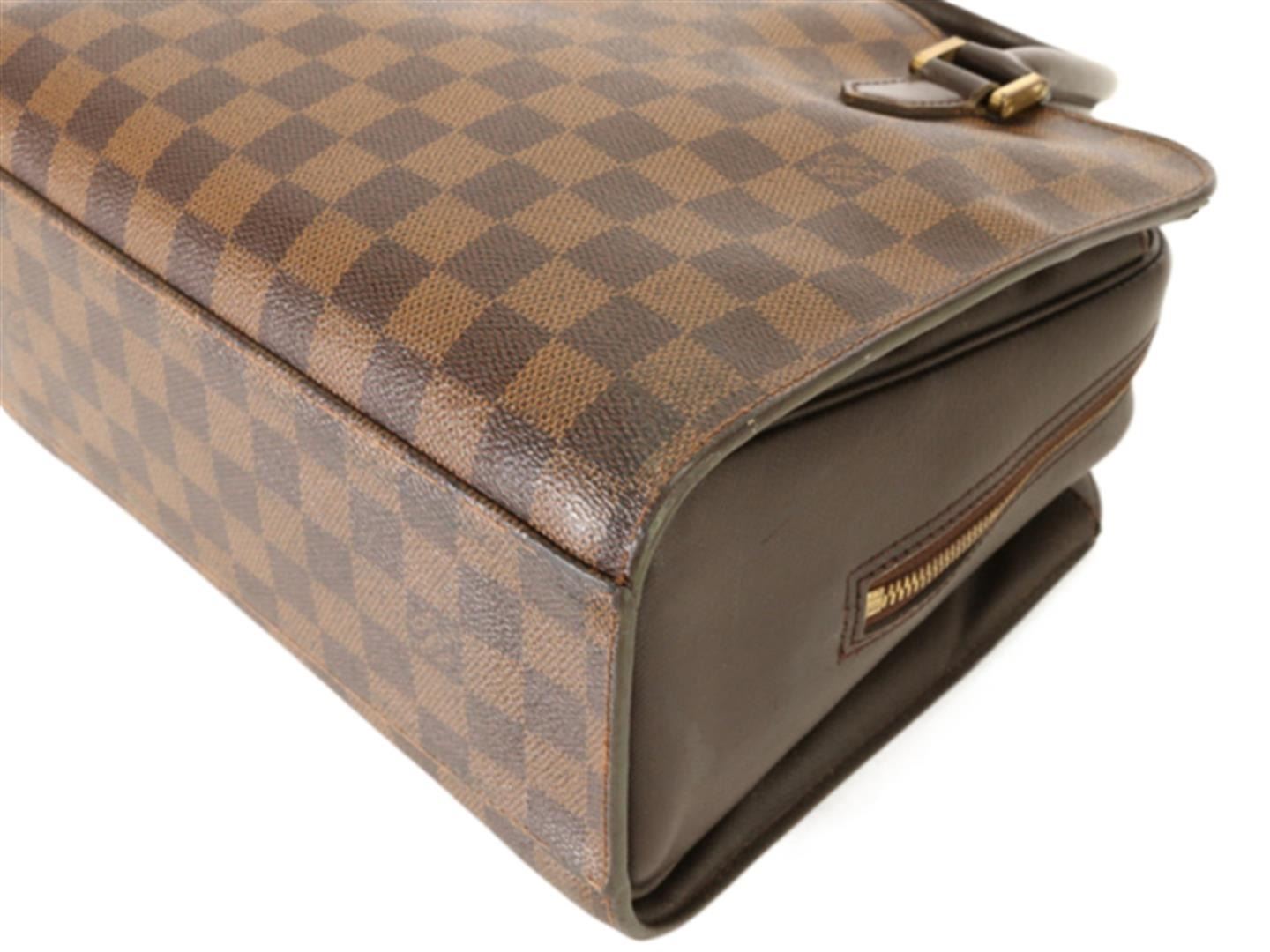 One Louis Vuitton Damier Ebene Canvas Leather Triana Handbag. Item is sold AS-IS. All available information is listed in the description and shown in the photo. Brown Damier Ebene coated canvas Louis Vuitton Triana Handbag with gold-tone hardware, mocha leather trim, dual rolled handles, dual slit pockets at exterior, orange Alcantara lining, single zipped pocket at interior wall and zip closure at top. 10.5"x3.5"x9.5"xBag Drop:5"/26.6cmx8.8cmx24.1cmxBag Drop:12.7cm