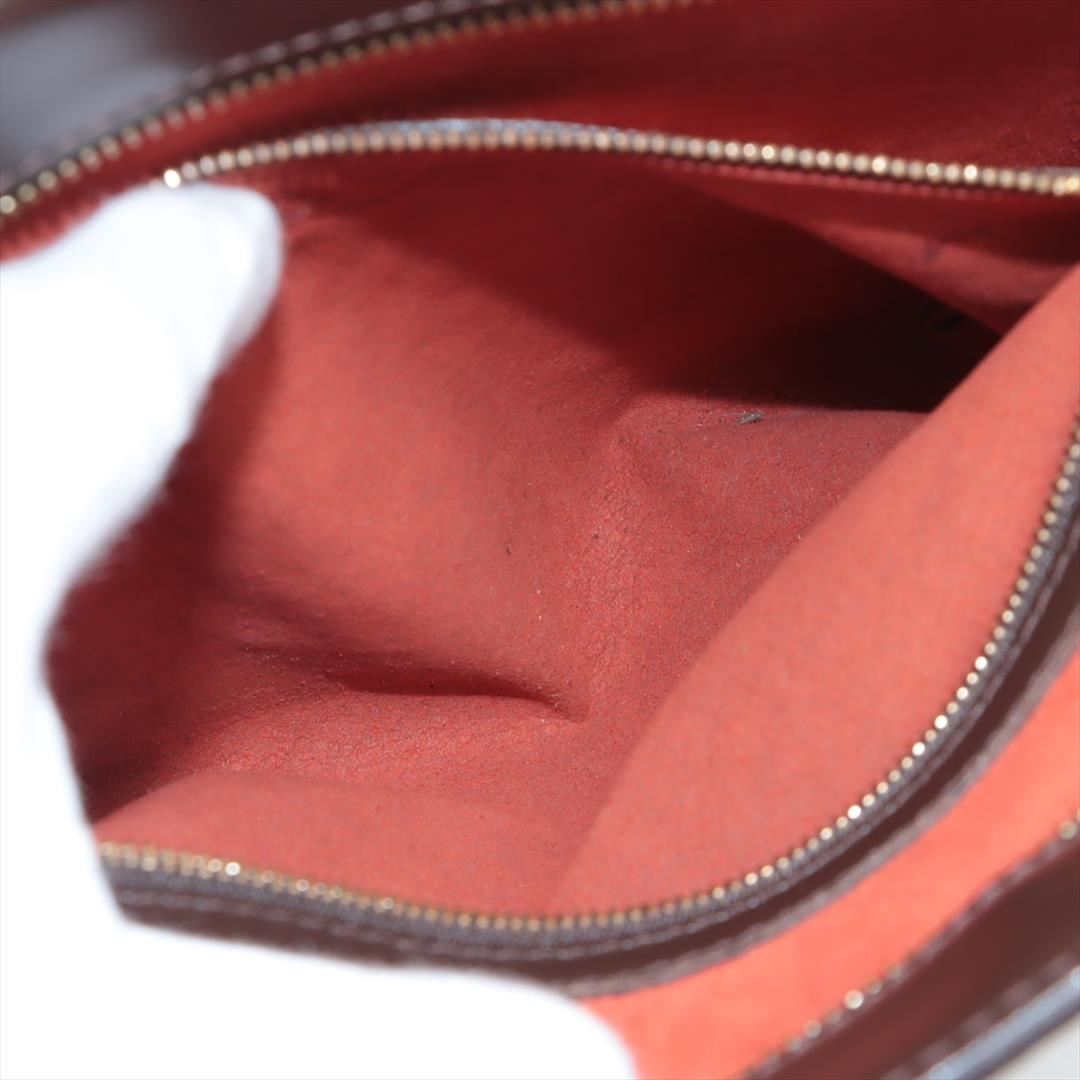 Brown Damier Ebene coated canvas Louis Vuitton Venice PM with gold-tone hardware, dark brown leather trim, red Alcantara lining, interior slip pocket with zipper, dual rolled top handles and zipper closure at top. Height: 11.5" Width: 11.25" Depth: 3.5
