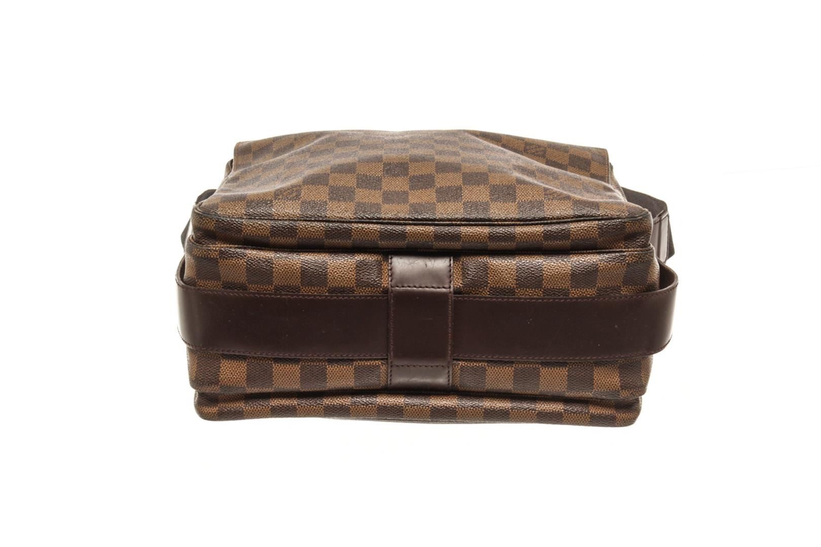 One Louis Vuitton Damier Ebene Canvas Naviglio Shoulder Bag. Item is sold AS-IS. All available information is listed in the description and shown in the photo. louis vuitton damier ebene canvas naviglio shoulder bag with brown canvas, coated finish, signature damier ebne canvas, adjustable shoulder strap, foldover top main compartment. Depth 3.5 in, Height 9.1 in / Depth 9 cm, Height 23 cm
