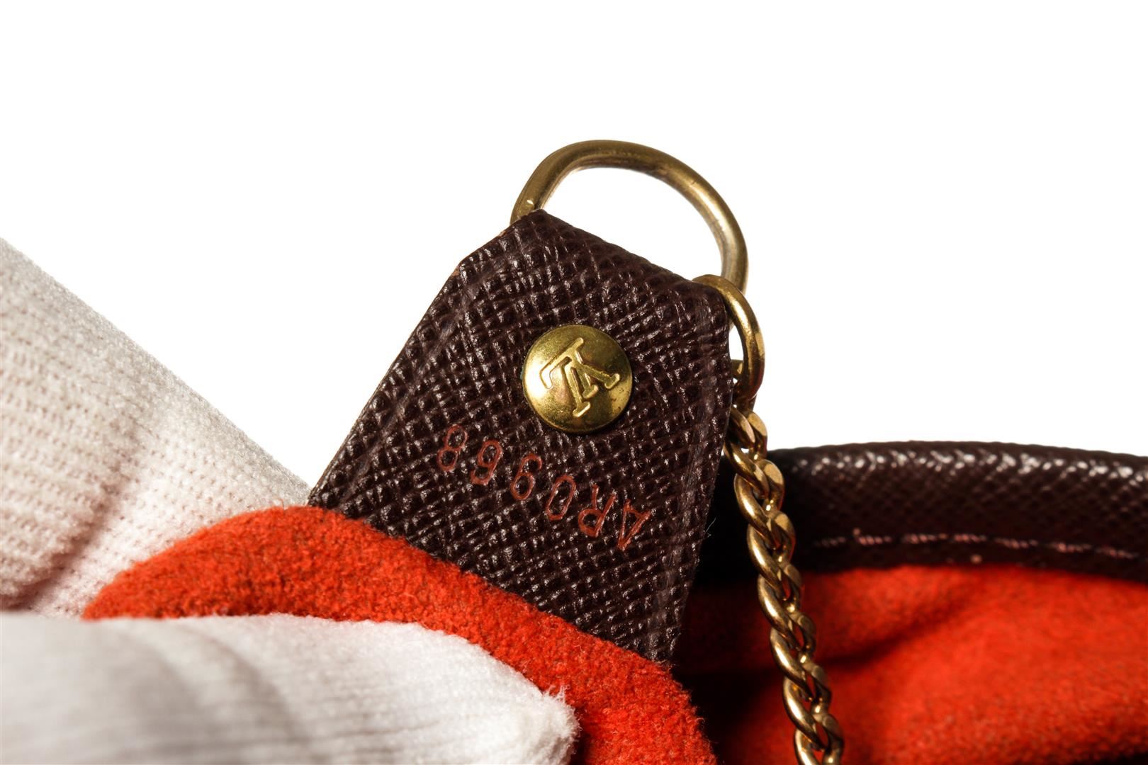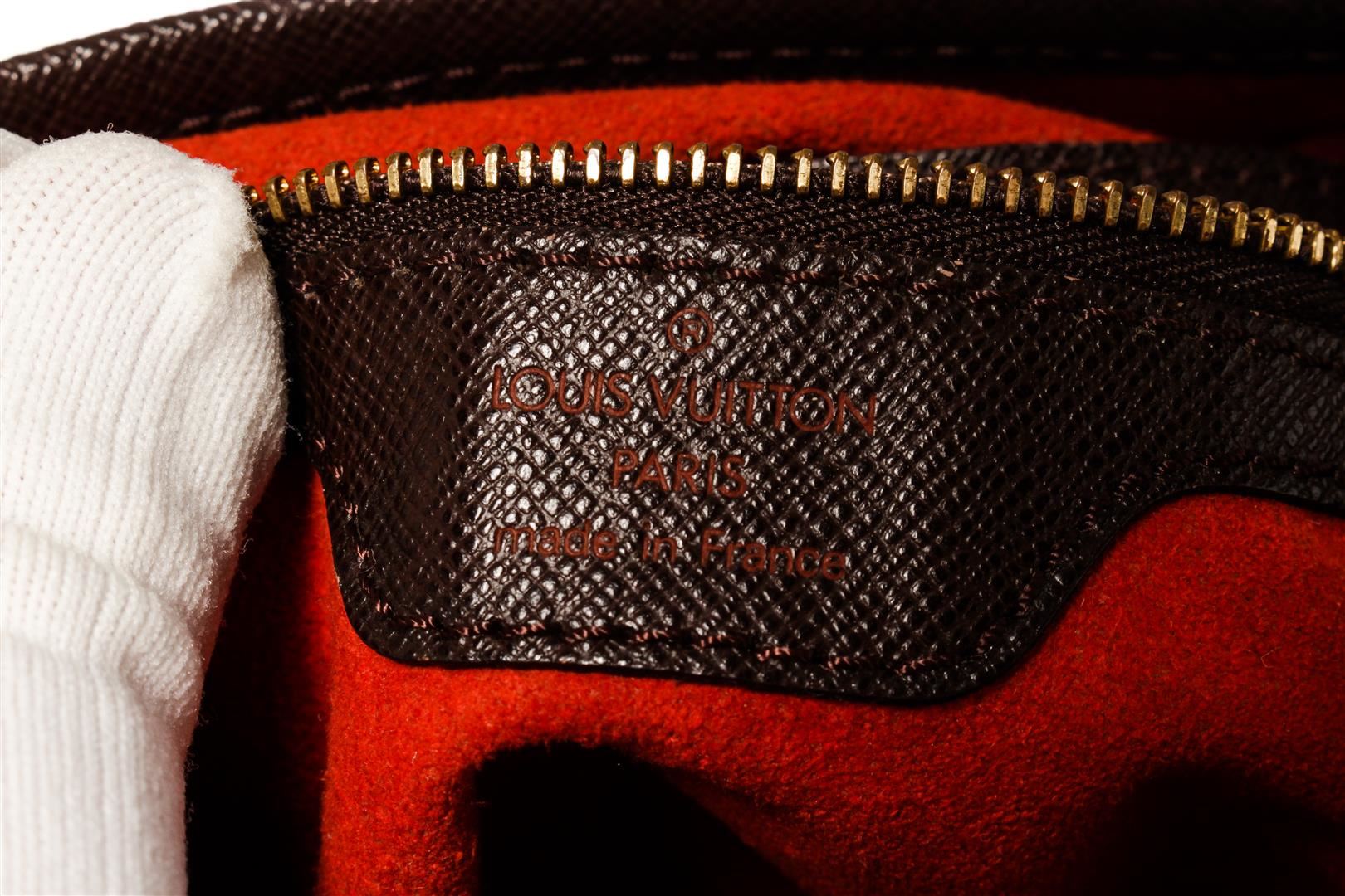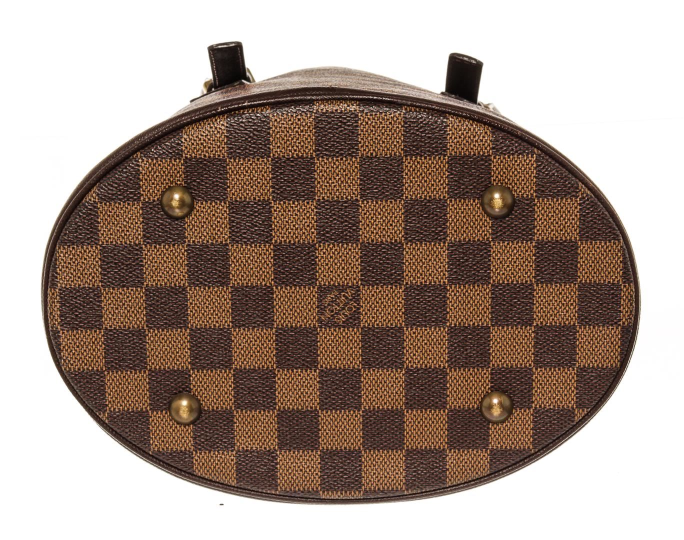 One Louis Vuitton Damier Ebene Marais Bucket Bag. Item is sold AS-IS. All available information is listed in the description and shown in the photo. LV Damier Ebene Marais Bucket Bag. Features gold hardware and red lining.
