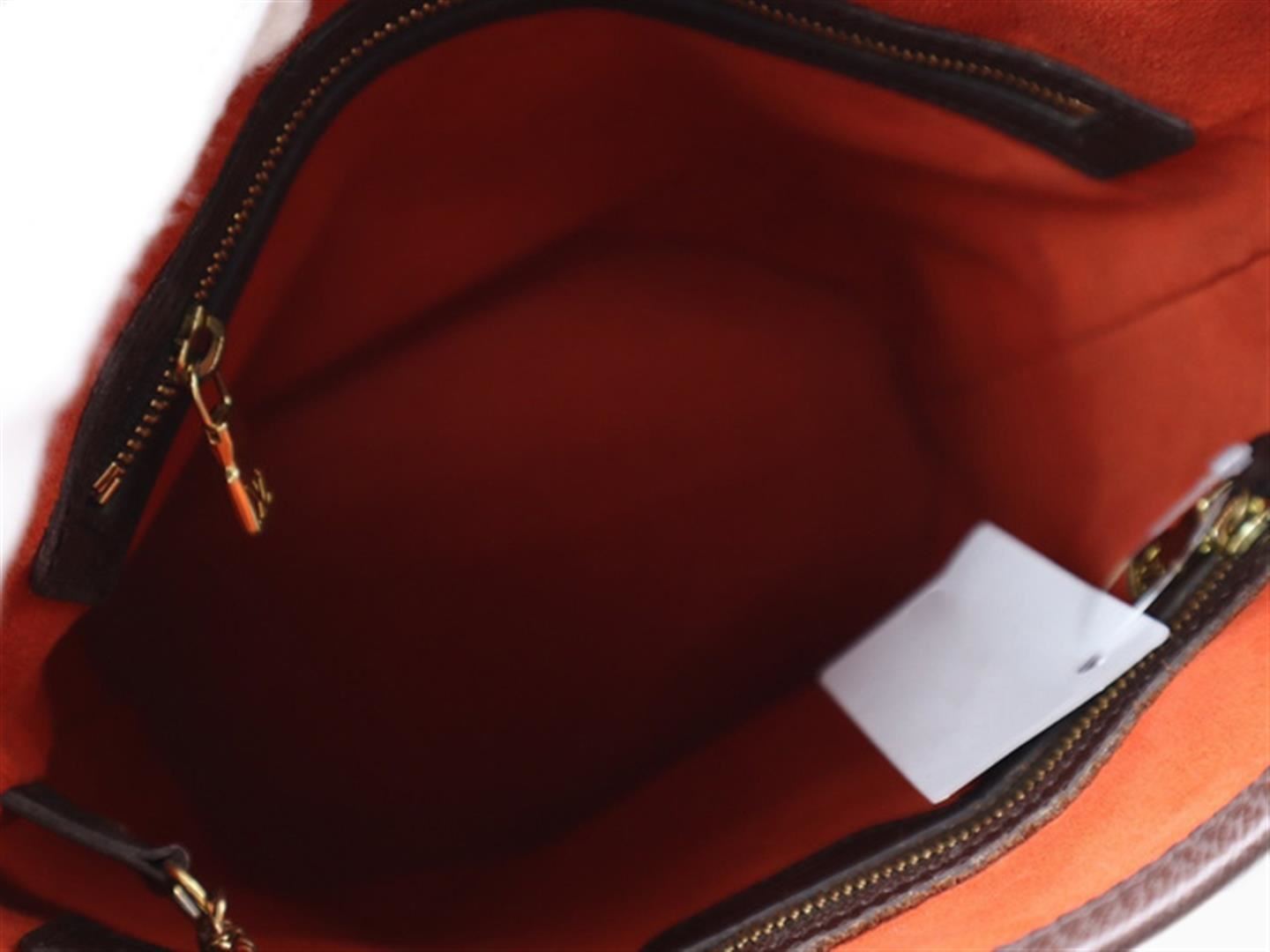 One Louis Vuitton Damier Ebene Marais Bucket Bag. Item is sold AS-IS. All available information is listed in the description and shown in the photo. Louis Vuitton Brown Damier Ebene coated canvas Marais Bucket Bag with gold tone hardware, brown taiga leather trim, red suede lining, zip interior pocket, brown leather dual top straps, and an open top closure