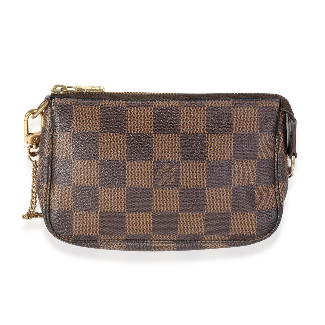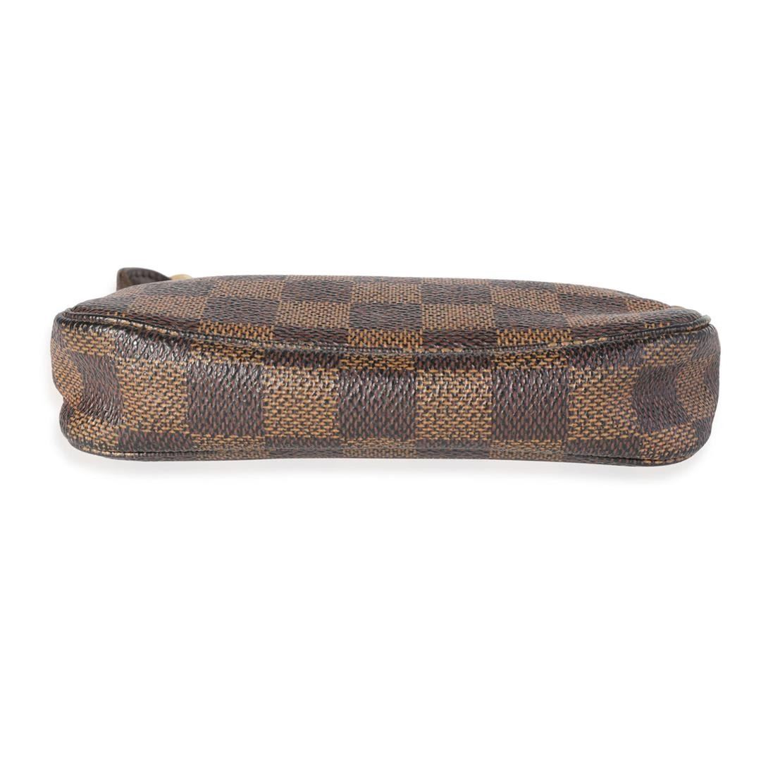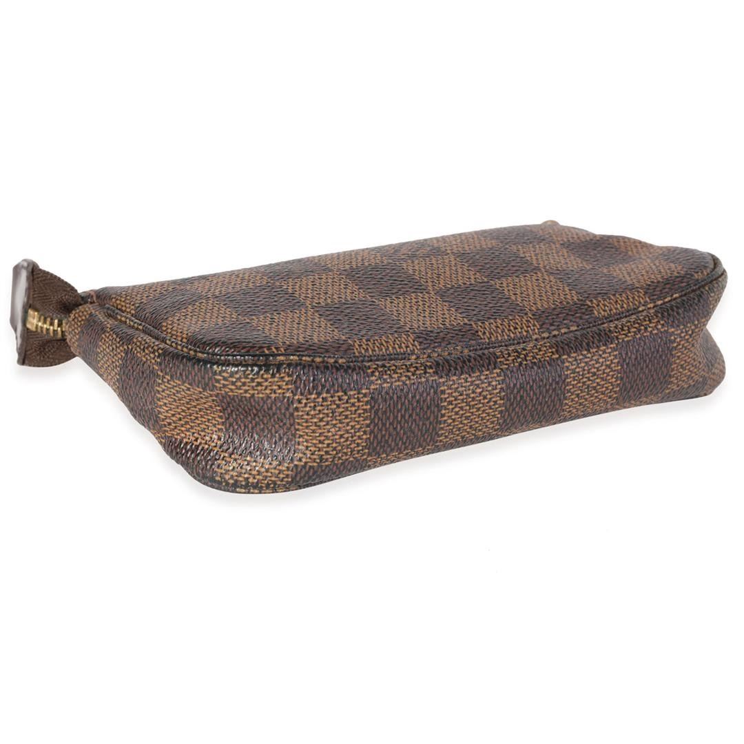 One Louis Vuitton Damier Ebene Mini Pochette Accessoires. Item is sold AS-IS. All available information is listed in the description and shown in the photo. Louis Vuitton Damier Ebene Mini Pochette Accessoires. Features gold hardware, red suede interior, and a gold zipper closure.