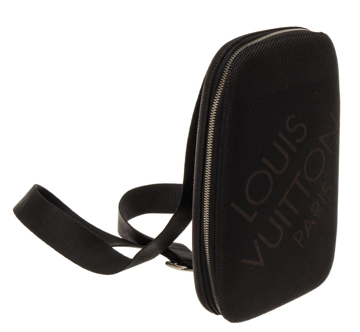 One Louis Vuitton Damier Geant Mage Waist Shoulder Bag. Item is sold AS-IS. All available information is listed in the description and shown in the photo. Louis Vuitton Damier Geant Mage Waist Shoulder Bag with silver-tone hardware, adjustable woven shoulder strap, brown taiga leather interior, dual card slots, single mesh compartment, money clip holder, zip mesh pocket and zip closure at parameters.