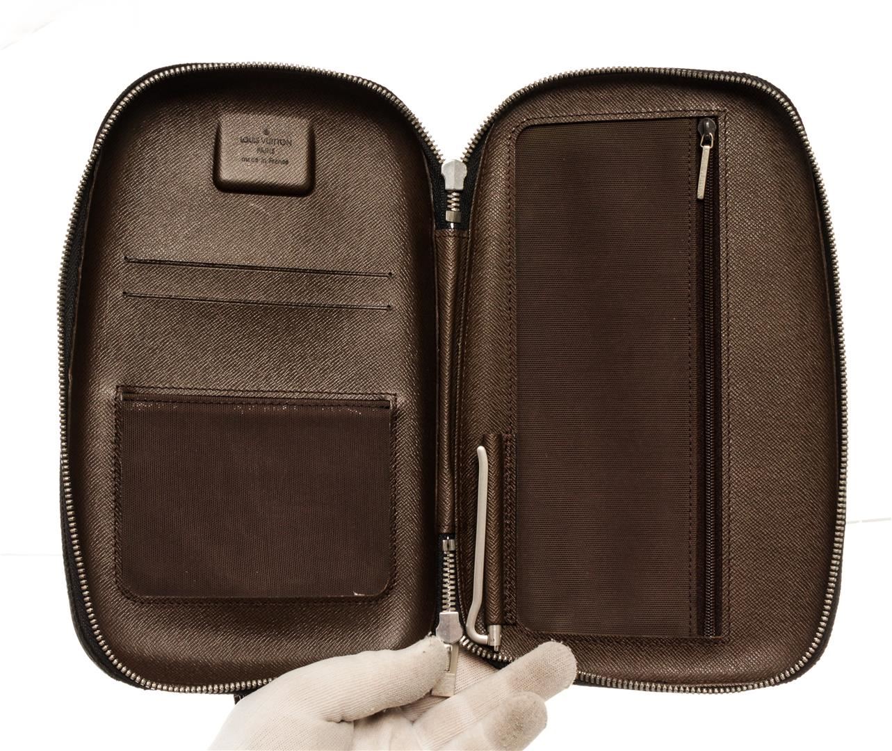One Louis Vuitton Damier Geant Mage Waist Shoulder Bag. Item is sold AS-IS. All available information is listed in the description and shown in the photo. Louis Vuitton Damier Geant Mage Waist Shoulder Bag with silver-tone hardware, adjustable woven shoulder strap, brown taiga leather interior, dual card slots, single mesh compartment, money clip holder, zip mesh pocket and zip closure at parameters.
