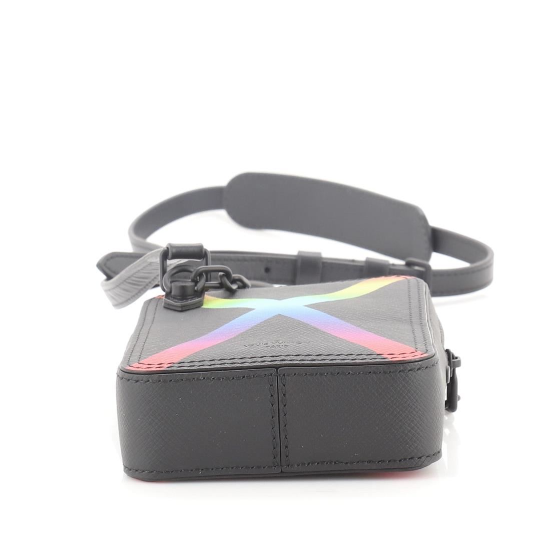 One Louis Vuitton Danube Messenger Bag Rainbow Taiga Leather Black, Multicolor, Print. Item is sold AS-IS. All available information is listed in the description and shown in the photo. Louis Vuitton Danube Messenger Bag Rainbow Taiga Leather Black Rainbow Taiga Leather Condition Details: Minor scuffs on strap, scratches on hardware. Height 6.5", Width 4.5", Depth 2", Strap Drop 20-24