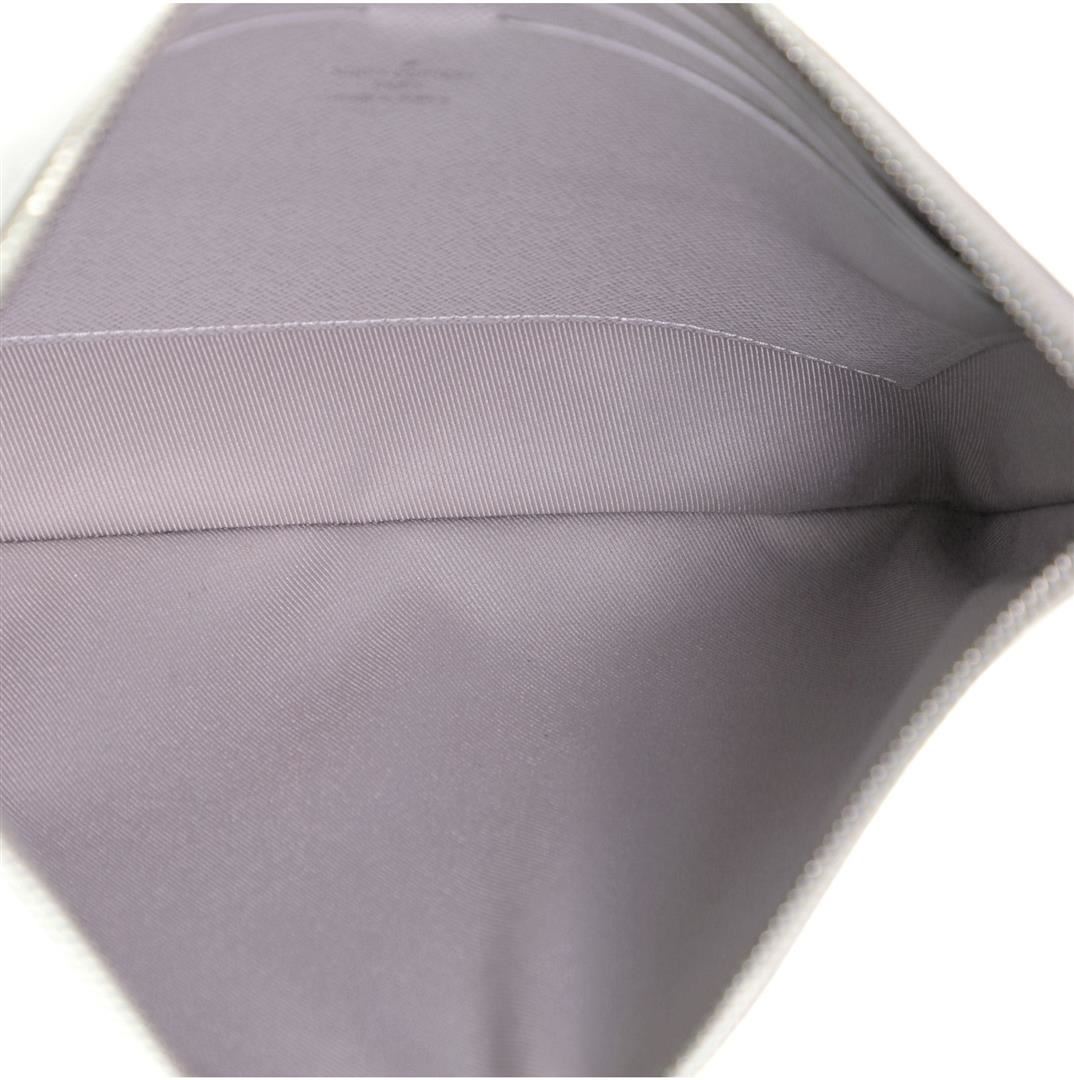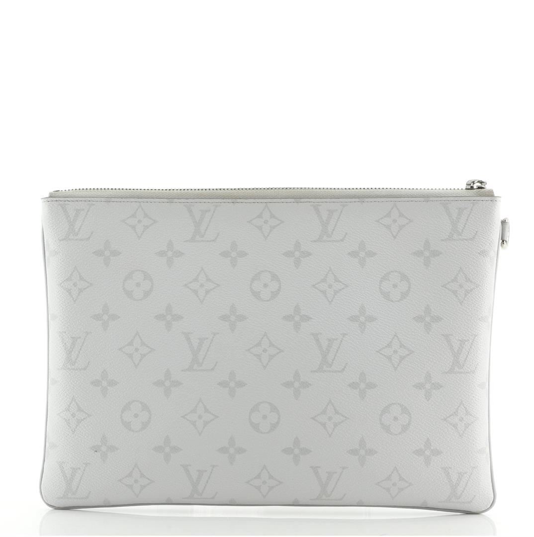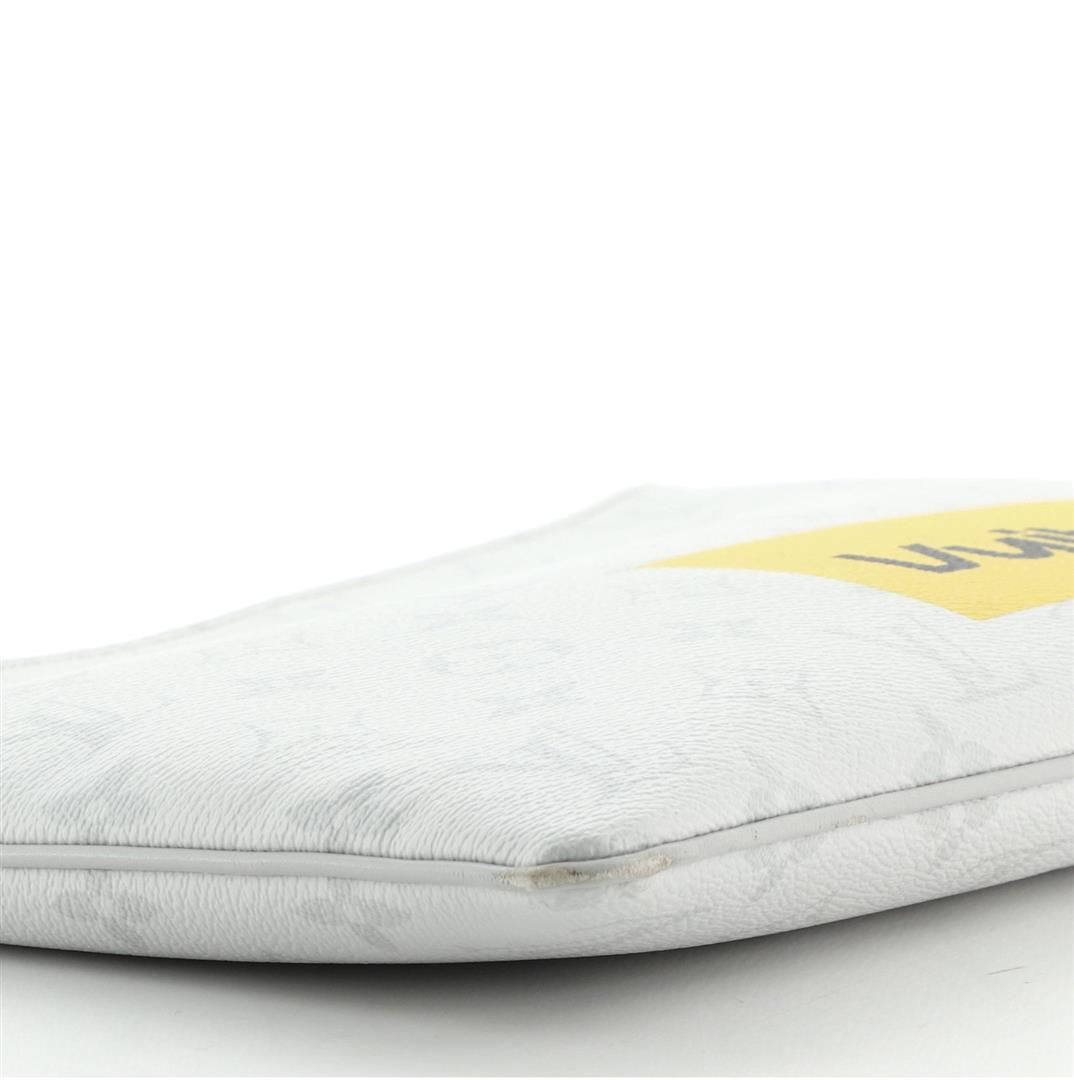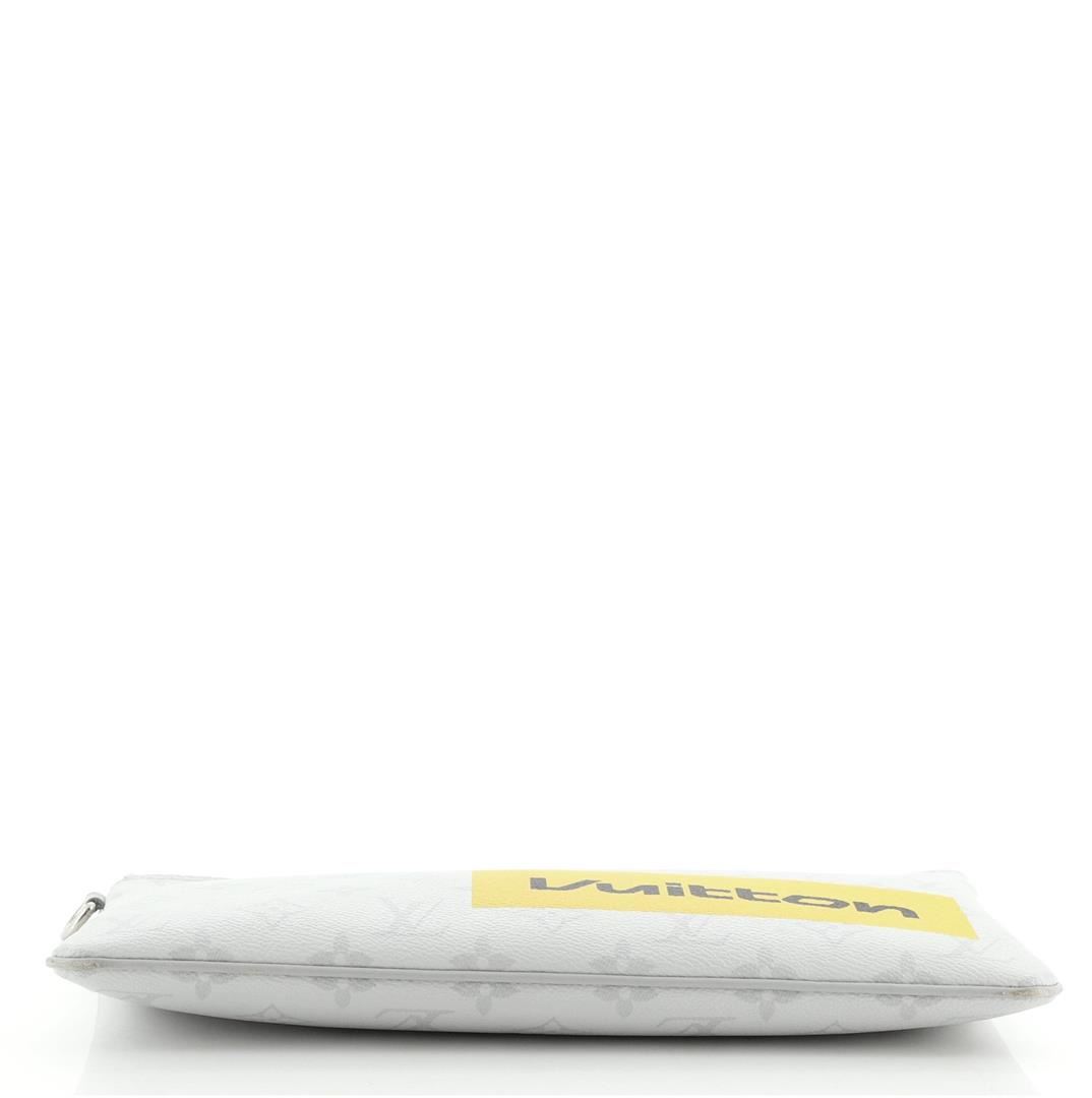 Louis Vuitton Zipped GM Pouch with gray Monogram coated canvas and yellow print, silver-tone zipper at the top and fine textile interior lining.