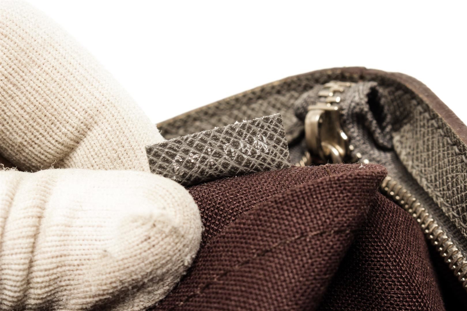 One Louis Vuitton Gray Taiga Leather Sasha Crossbody Bag. Item is sold AS-IS. Please check photos and descriptions for all available details. Louis Vuitton Gray Taiga Leather Sasha Crossbody Bag with taiga leather, silver-tone hardware, front zip and rear flat pockets, two interior flat pockets, adjustable fabric strap, zip top closure.