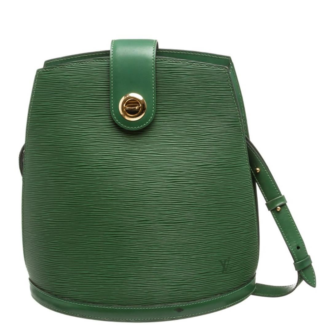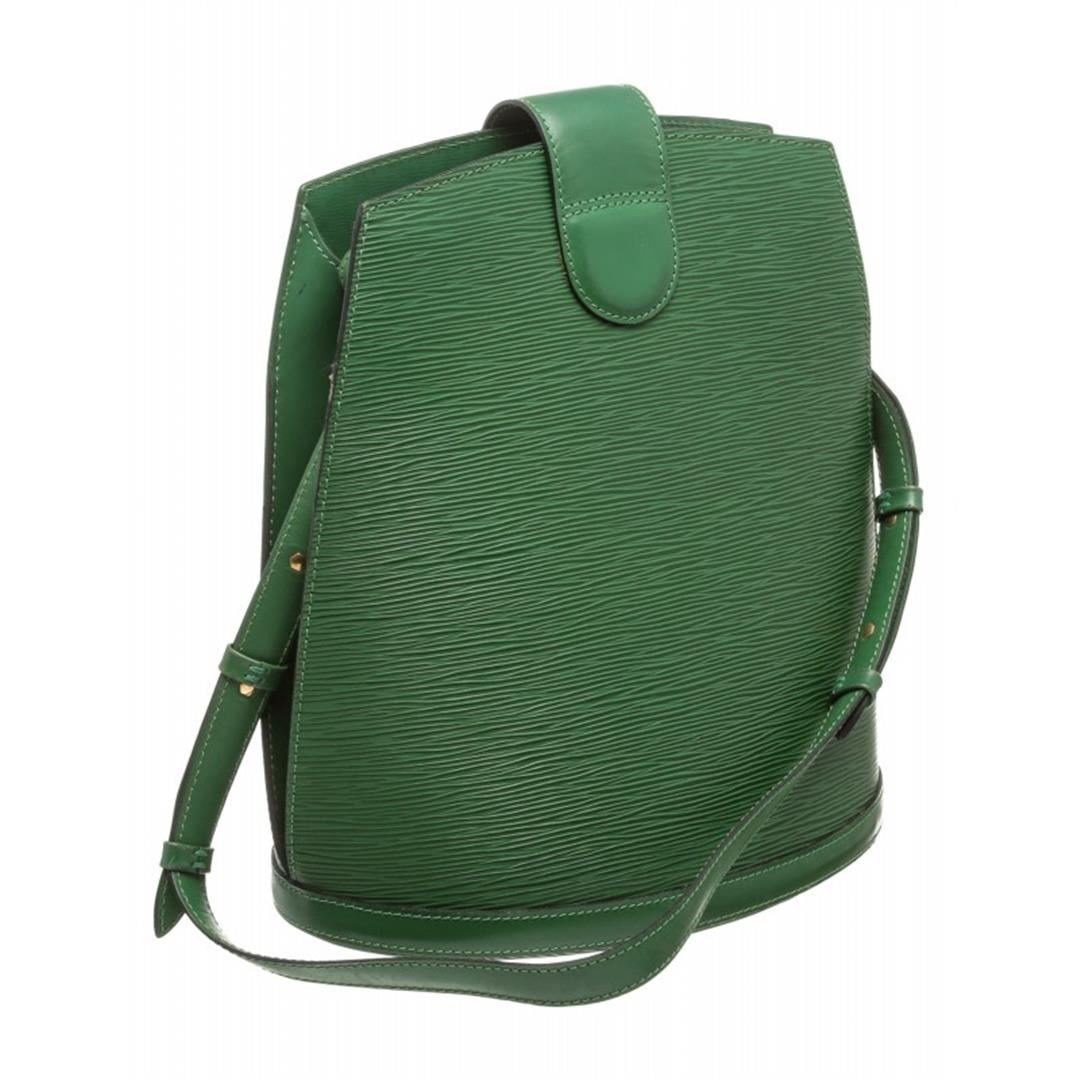 Epi leather Louis Vuitton Cluny shoulder bag with brass hardware, single flat shoulder strap with peg-in-hole adjustment, embossed logo at front corner, tonal Alcantara lining, single pocket at interior wall and turn-lock closure at front flap.