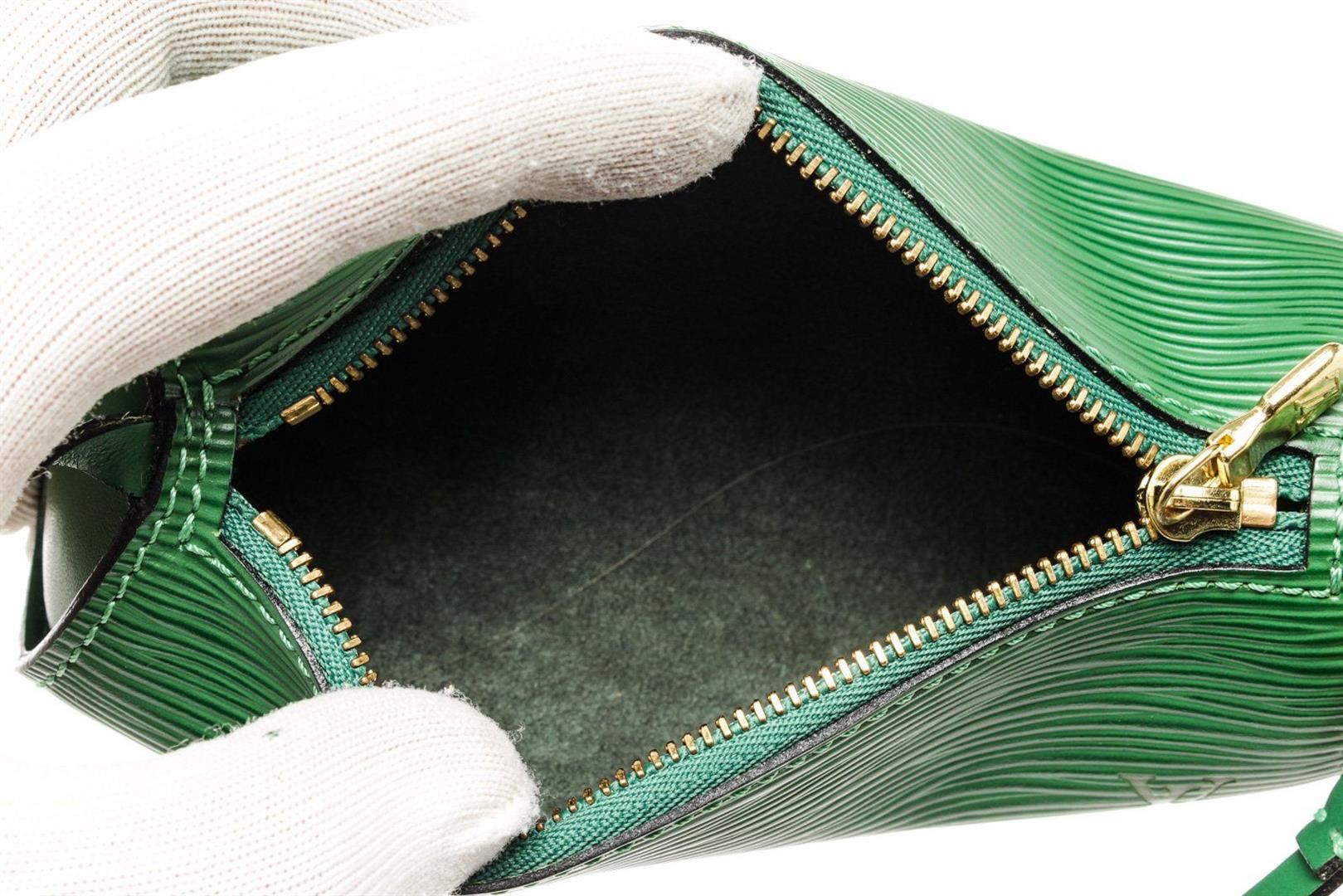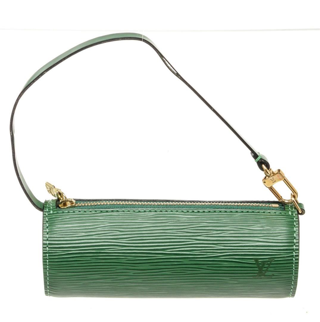 Louis Vuitton Green Epi Leather Mini Papillon Shoulder Bag with epi leather gold-tone hardware, trim tan vachetta leather and zipper closure.